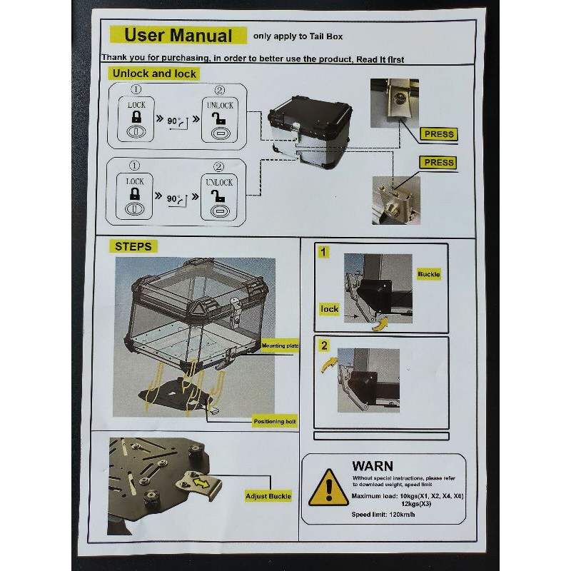 Motorcycle Aluminium Top Box Kotak Motosikal Aluminum 36L 45L 55L 65L 80L Storage Box Silver Black