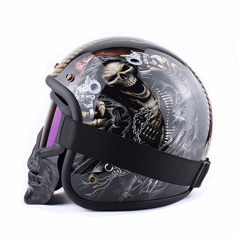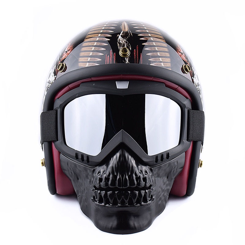 Motorcycle Face Mask Vintage Open Face Helmet Mask Anti-UV Dust Helmets Goggles Skull Mask Men Balaclava Winter Ski Face Shield