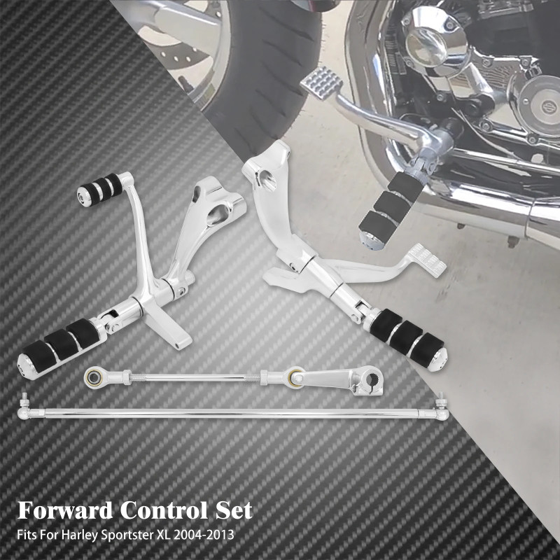 Motorcycle Forward Controls Footpeg Linkages Levers Complete Kit For Harley Sportster XL1200C XL883 Custom 2004-Up Black