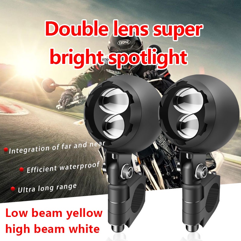 Motorcycle LED Light Mini Driving Light Motorcycle Spotlight Spot Light White Yellow White+Yellow Three mode High and low light Fog Lamp