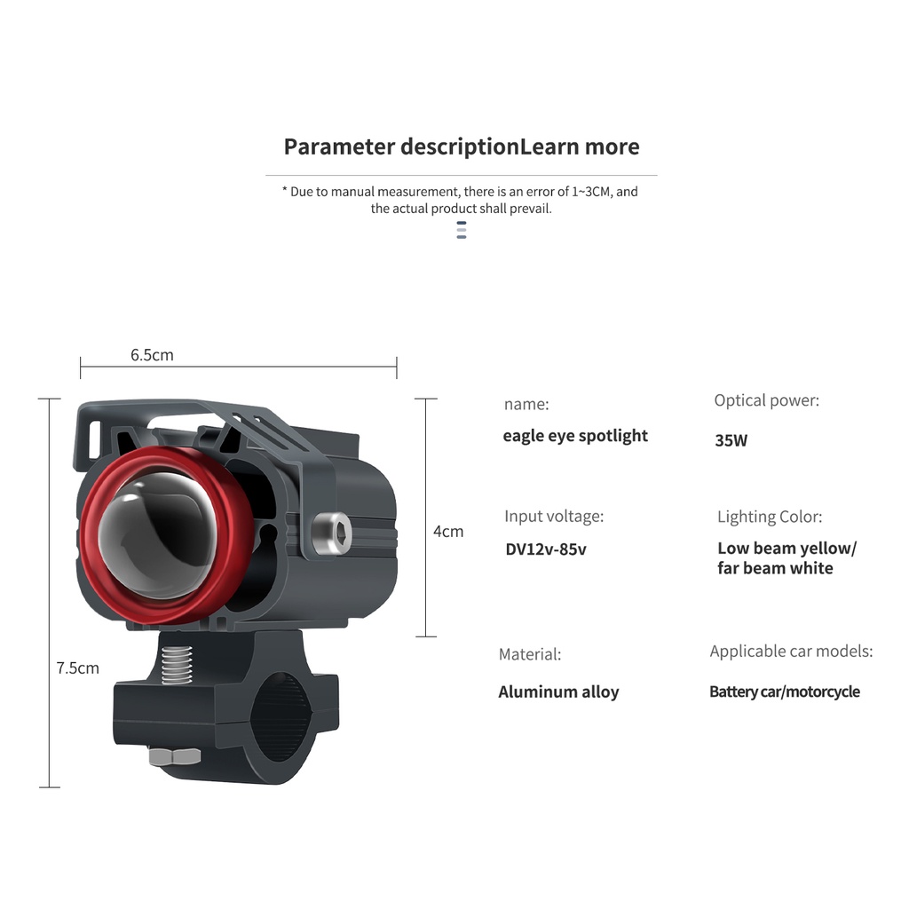 Motorcycle LED Spot Light Mini Driving Light White Yellow High and low light Motorcycle spotlight Fog Lamp