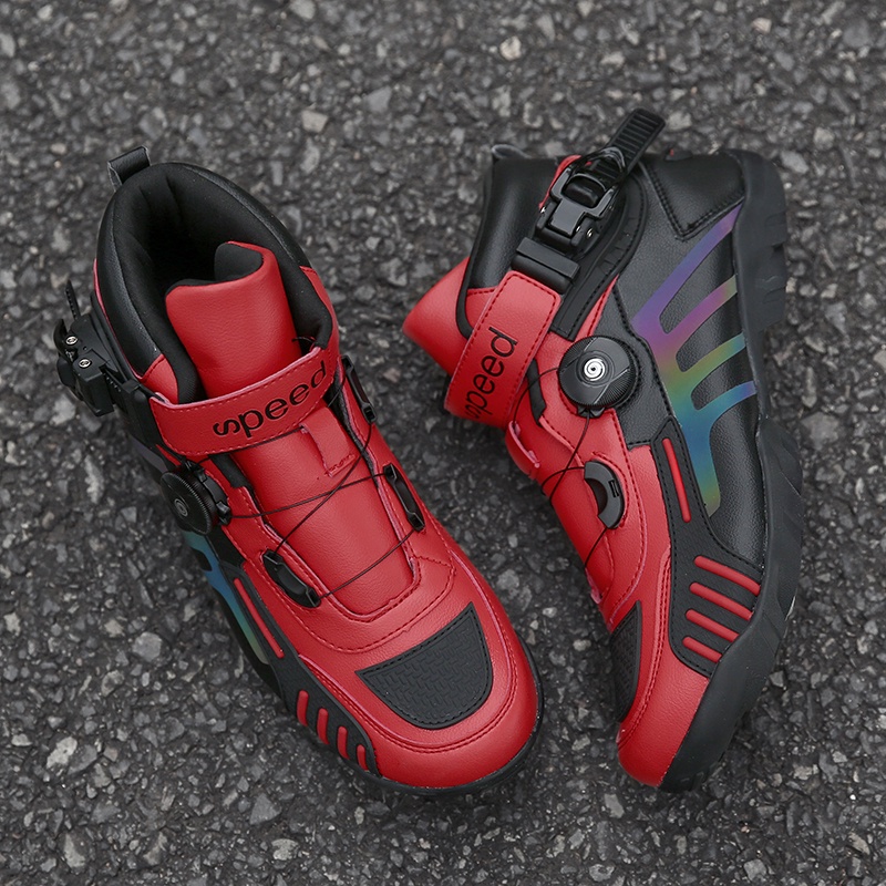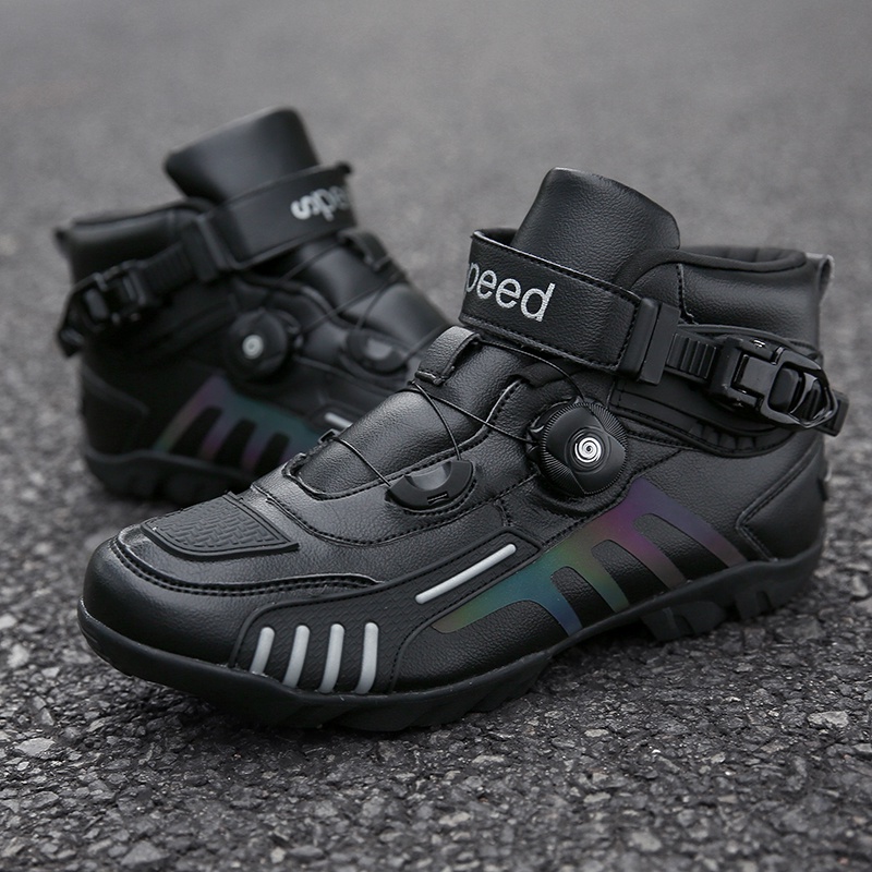 Motorcycle Shoes Men/Women Ankle Locomotive Motocross Racing Boots Off Road Bike Shoe Self-Locking Ultralight Athletic Moto Riding Boots Four Seasons Motorbike Ankle Shoes