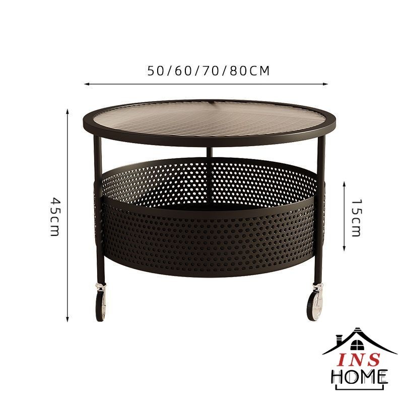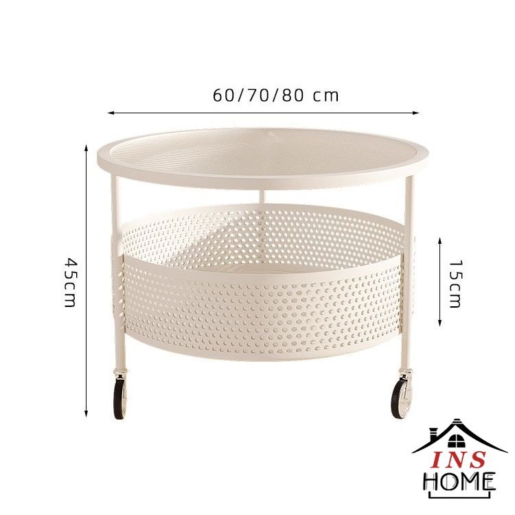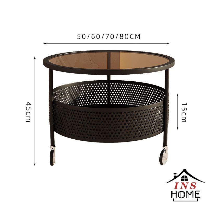 Movable Coffee Table White Light Luxury Glass Coffee Table Round Coffee Table With Wheels