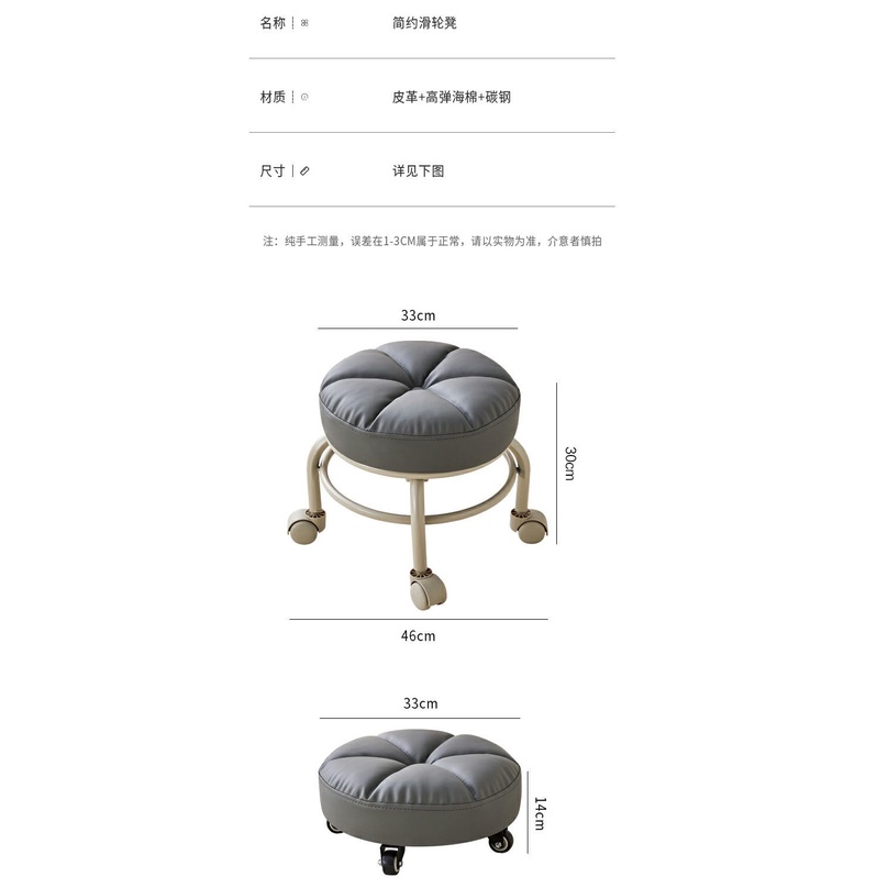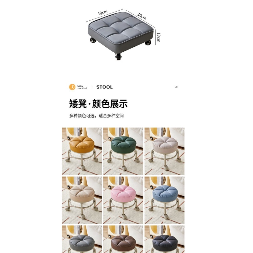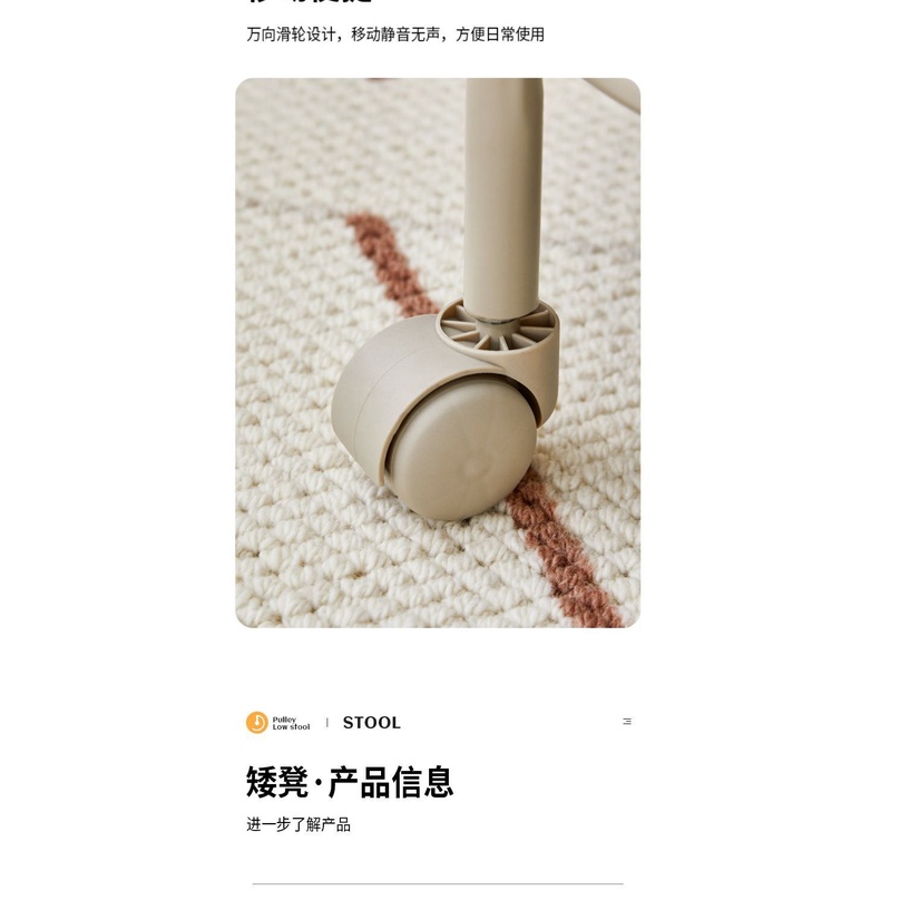 Movable Stool Pulley Low Stool Children's Stool with Wheel Universal Wheel Small Stool Household Floor Round Stool