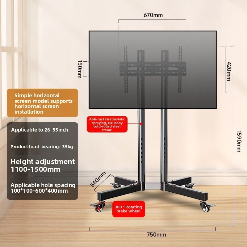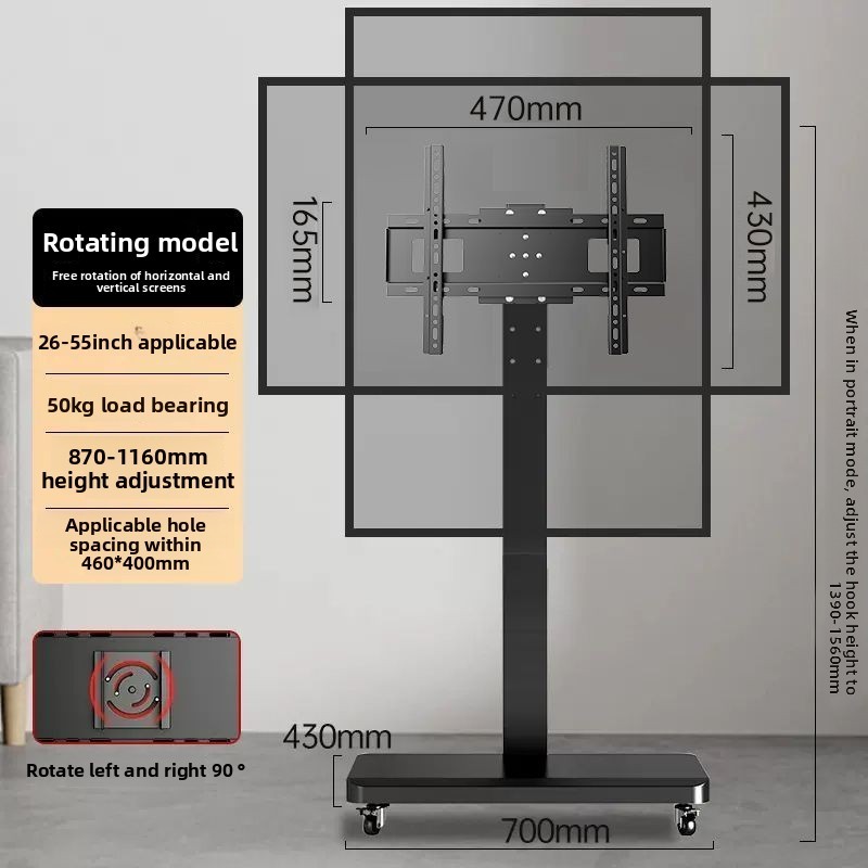 Movable TV Bracket Floor-Type Rotatable Horizontal and Vertical Screen Live Conference Display Bracket Trolley with Wheels/Swivel Floor Tv Stand Base