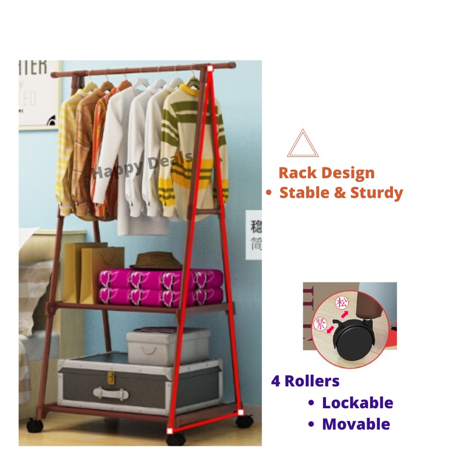 Moveable Garment Rack/ Movable Cloth Hanging Organizer Steel Rack /Triangle Clothes Hanger/ Movable Standing Rack Roller
