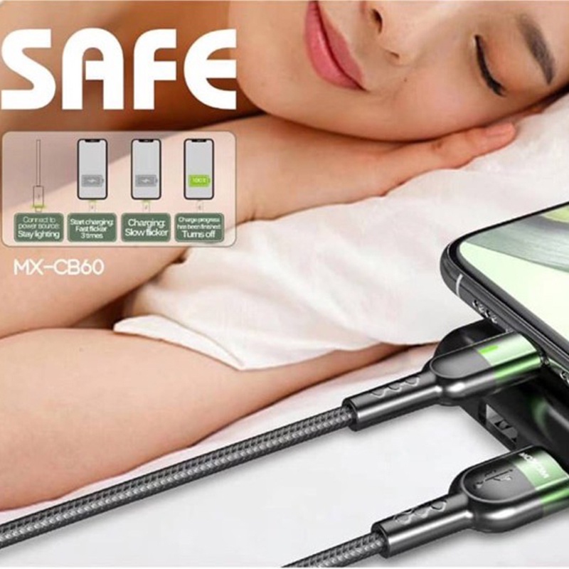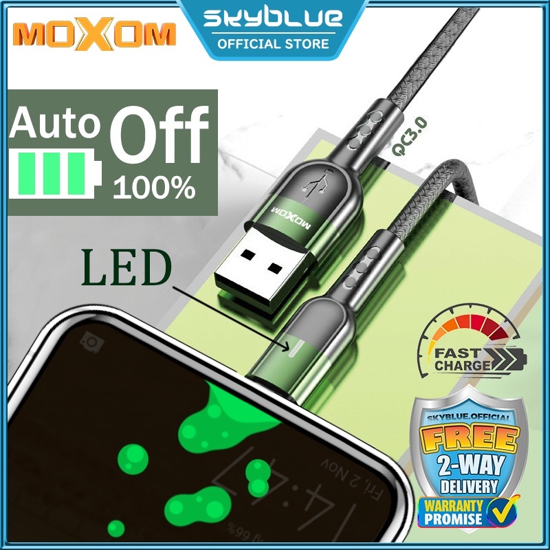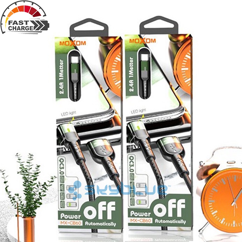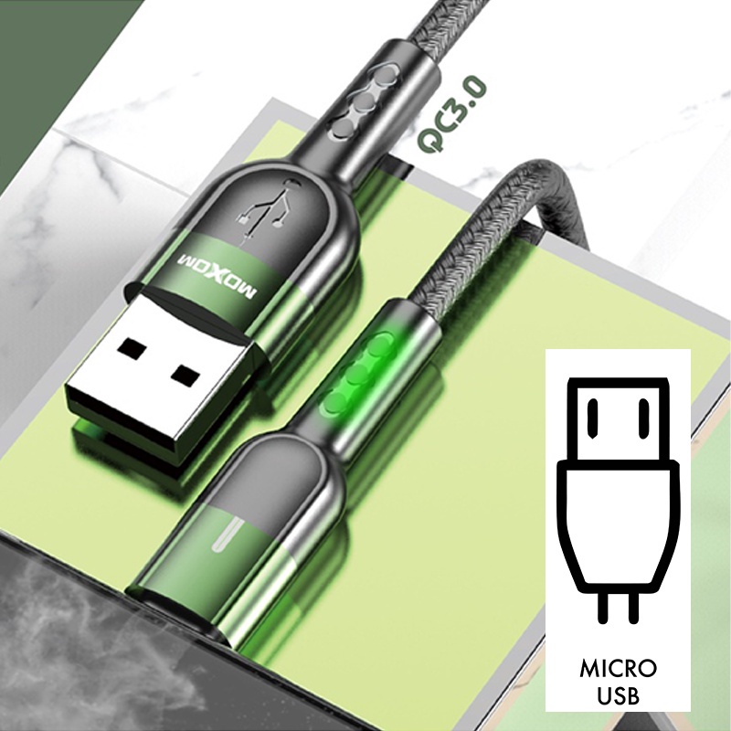 Moxom MX-CB60 3A Smart Charging Automatic Power Off USB Data Cable LED Light QC 3.0 Fast Charging For Micro/Type-C/Phone