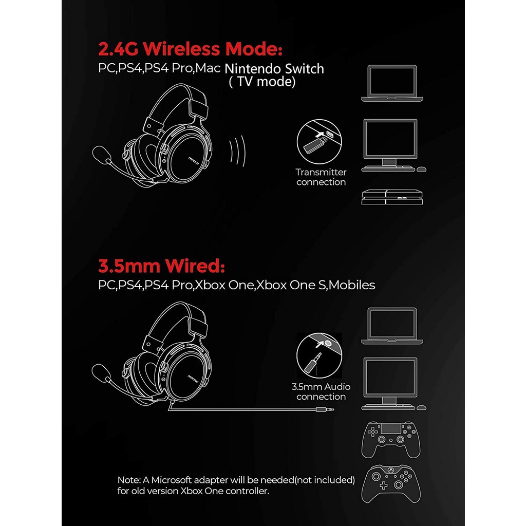 Mpow Air 2.4g Wireless Gaming Headphone With USB Dongle Gaming Headset for PS4 PS5 PC XBOX Gaming Earphone