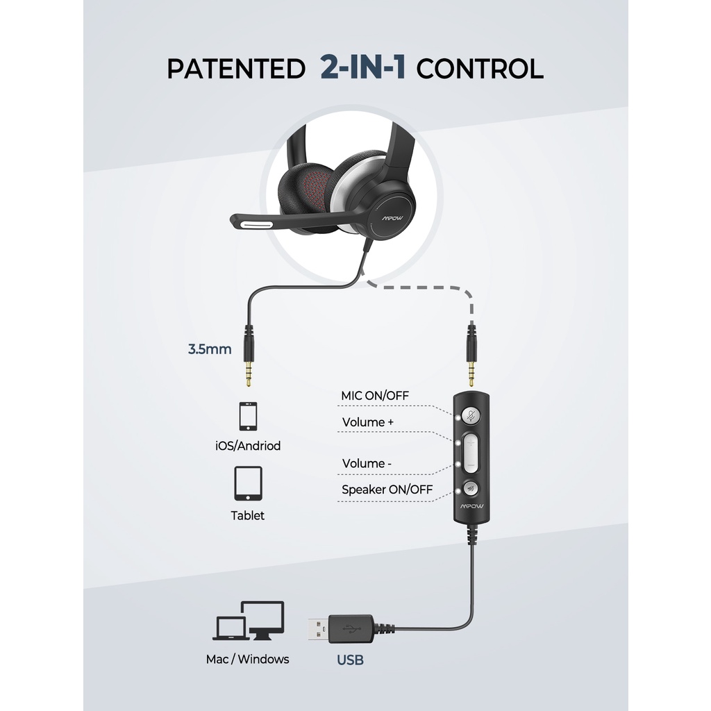 Mpow HC6 USB Business Headphone Business Headset with Microphone/Computer Headphone/Call Center Headset Zoom Meeting