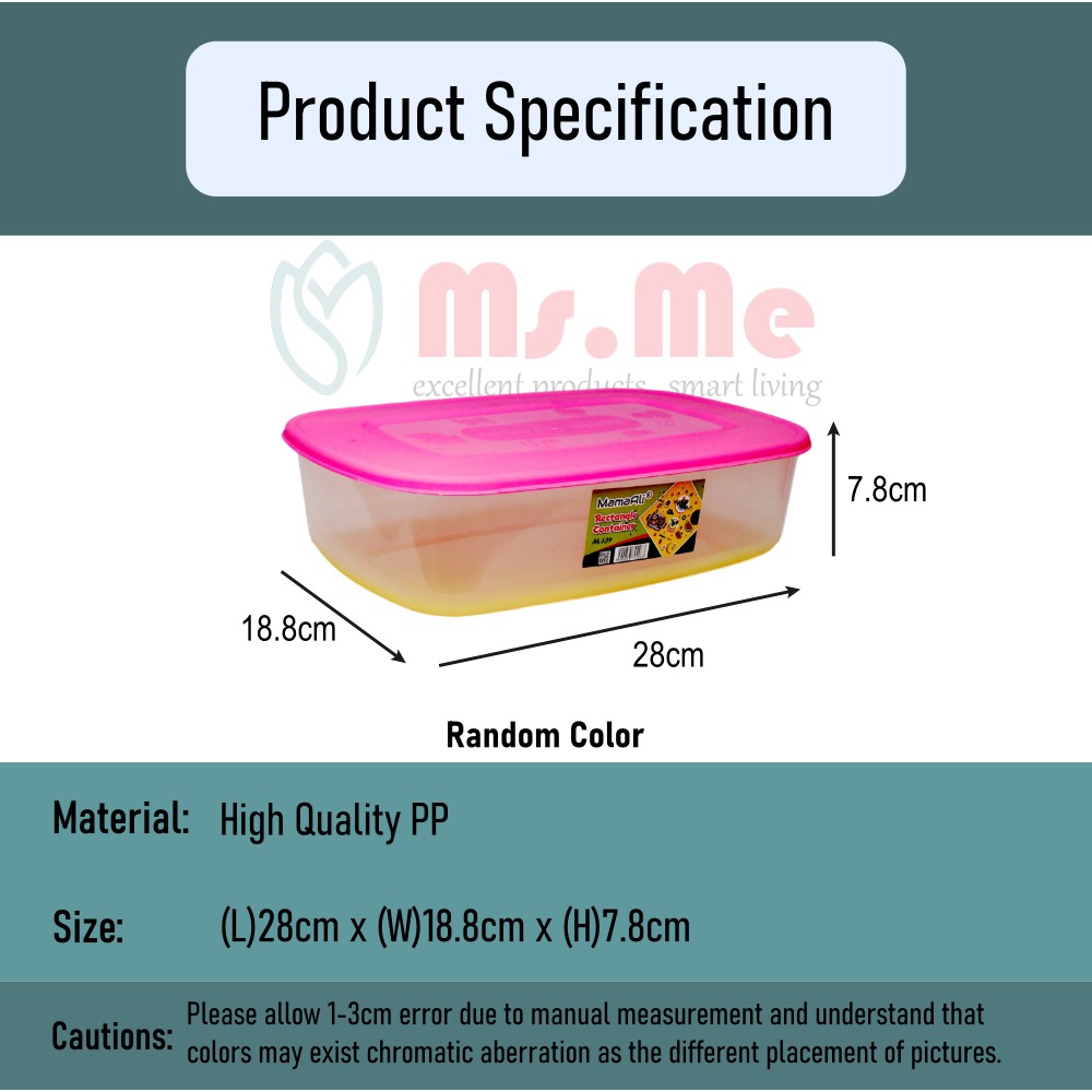 Ms.Me Length 28cm Translucent Food Container Multipurpose Rectangle Plastic Container Box Bekas Makanan Plastik