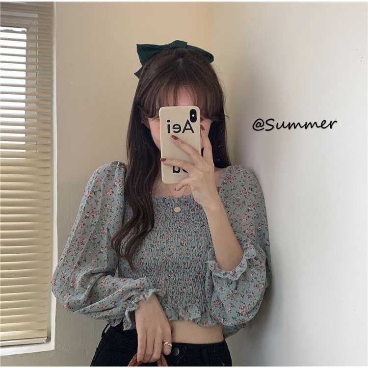 Msia Ready Stock🔥T1979 Flowery Sweet Top Korean Long Sleeve Top