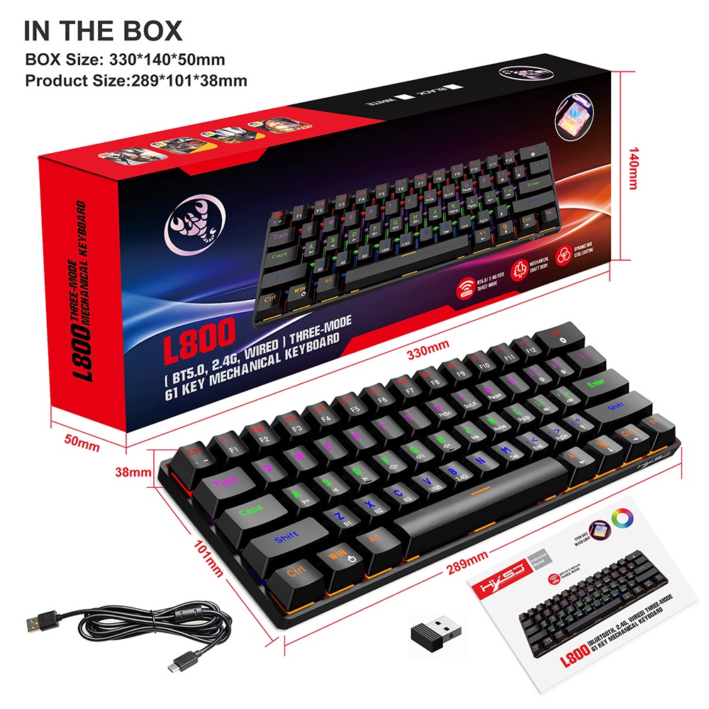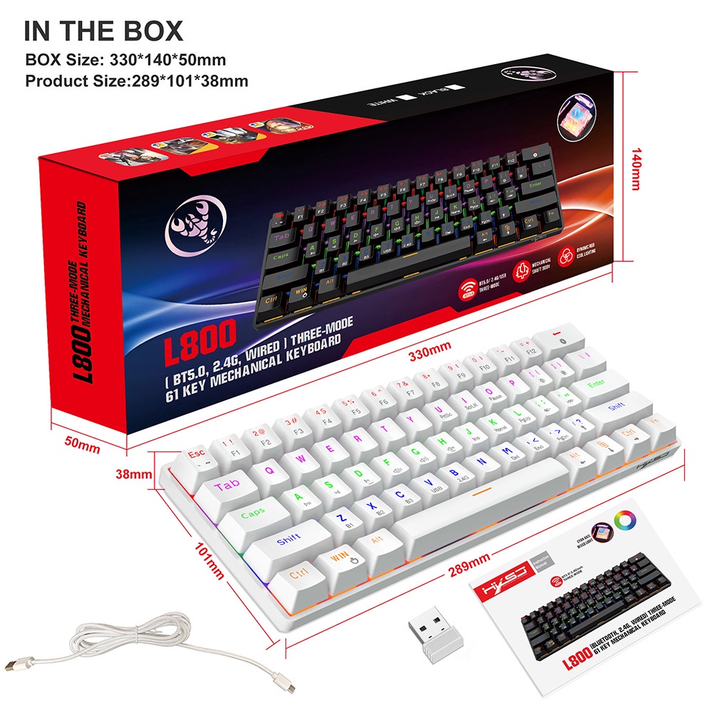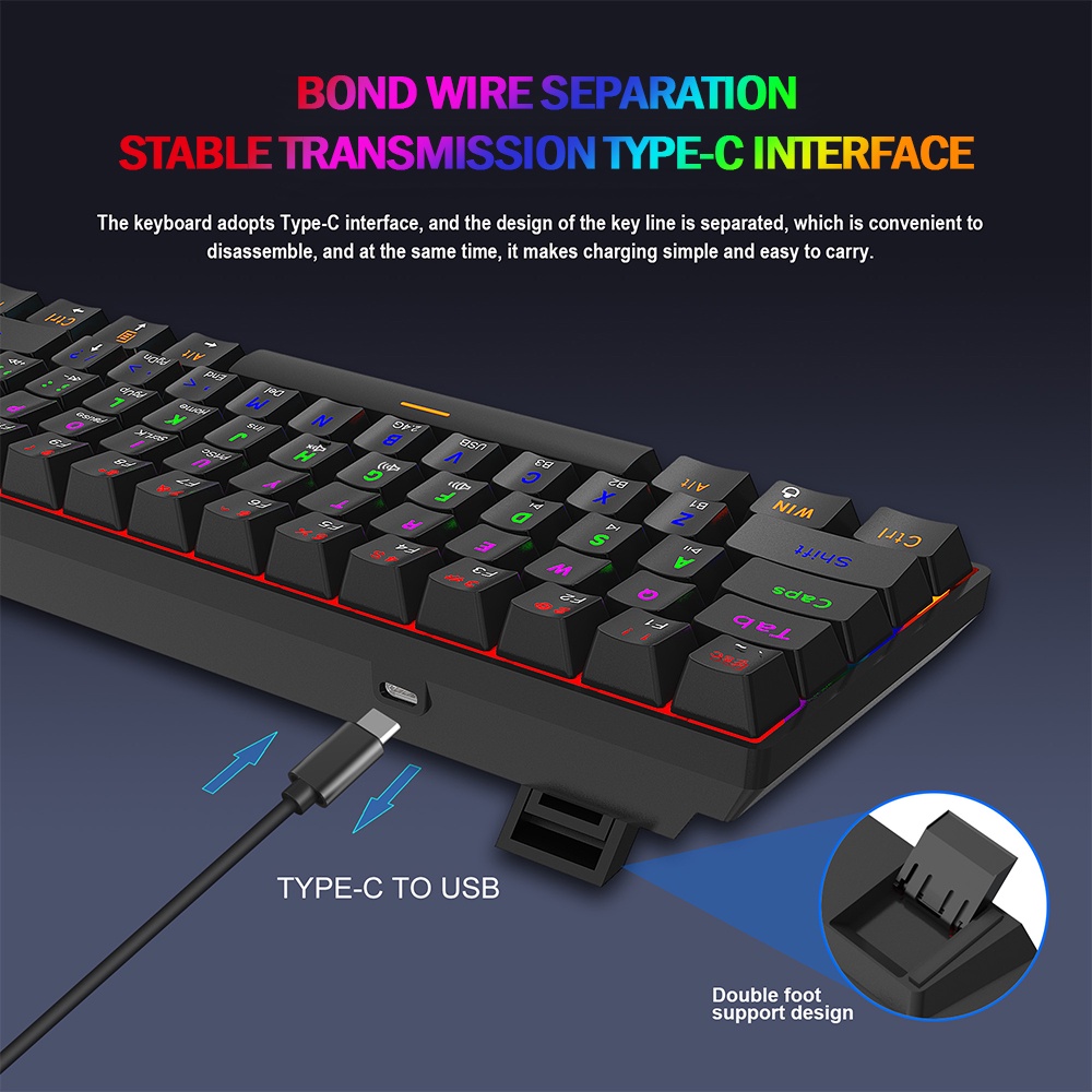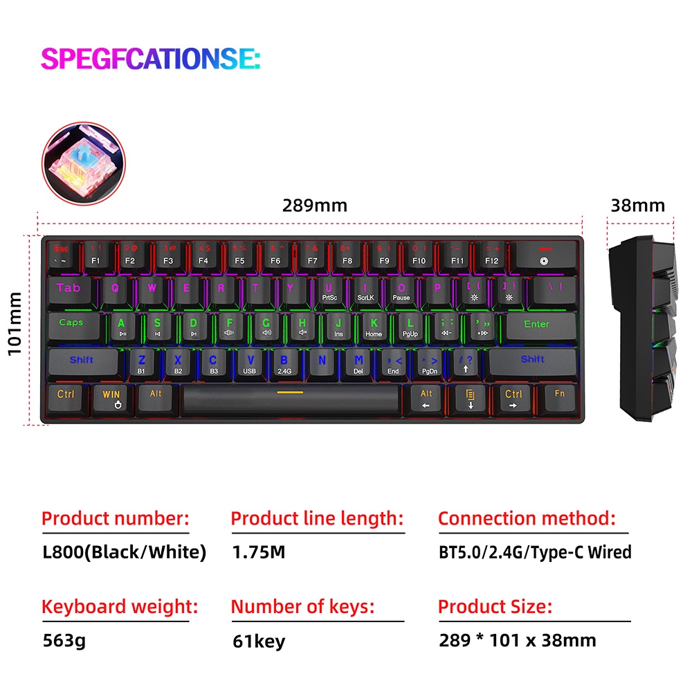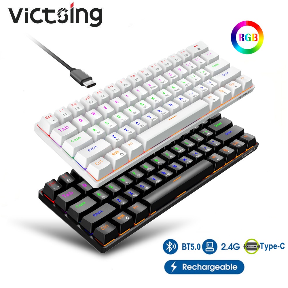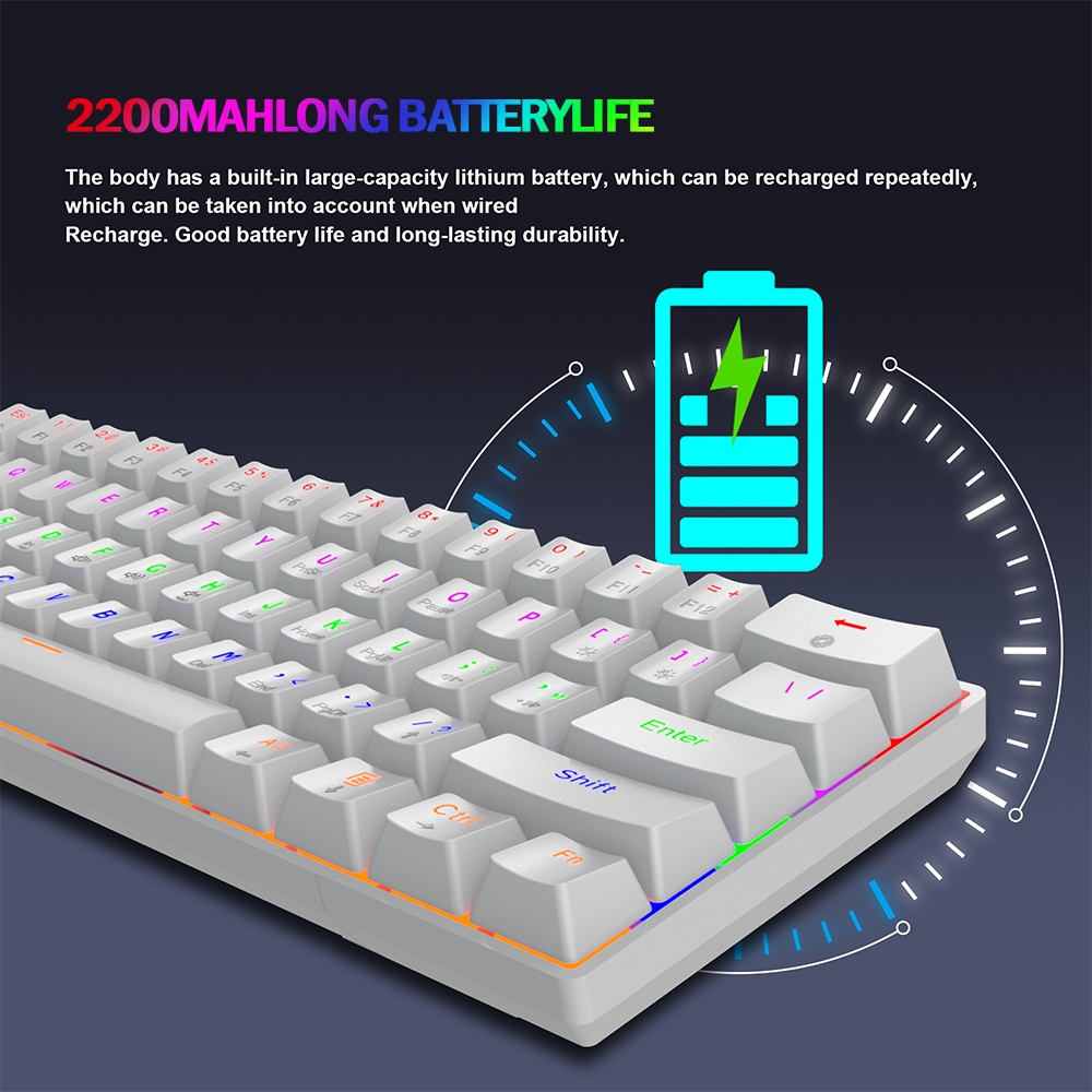 Multi-Device Wireless Mechanical Keyboard BT5.0/2.4G/Wired 60% RGB Rechargeable Gaming Keyboard Blue switch