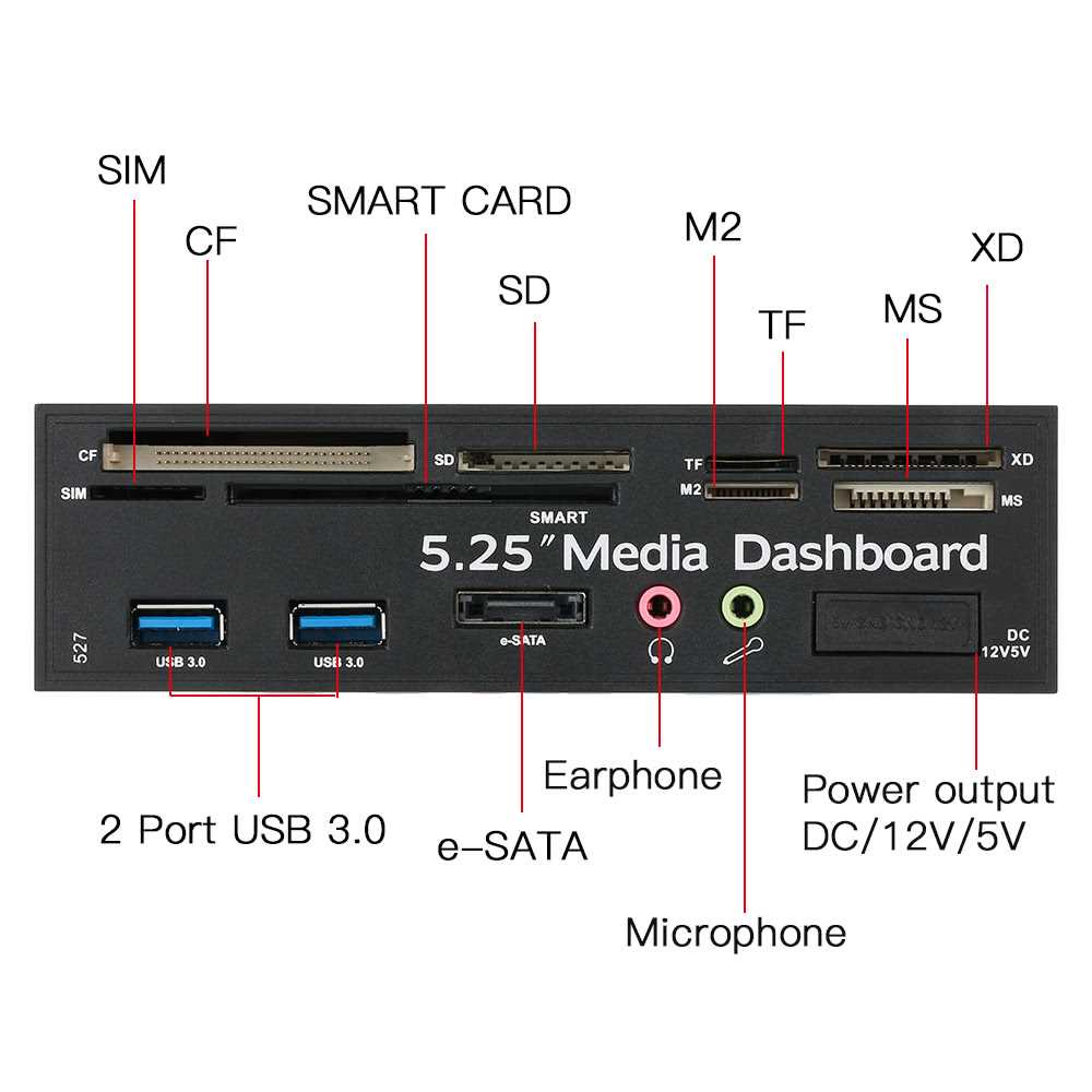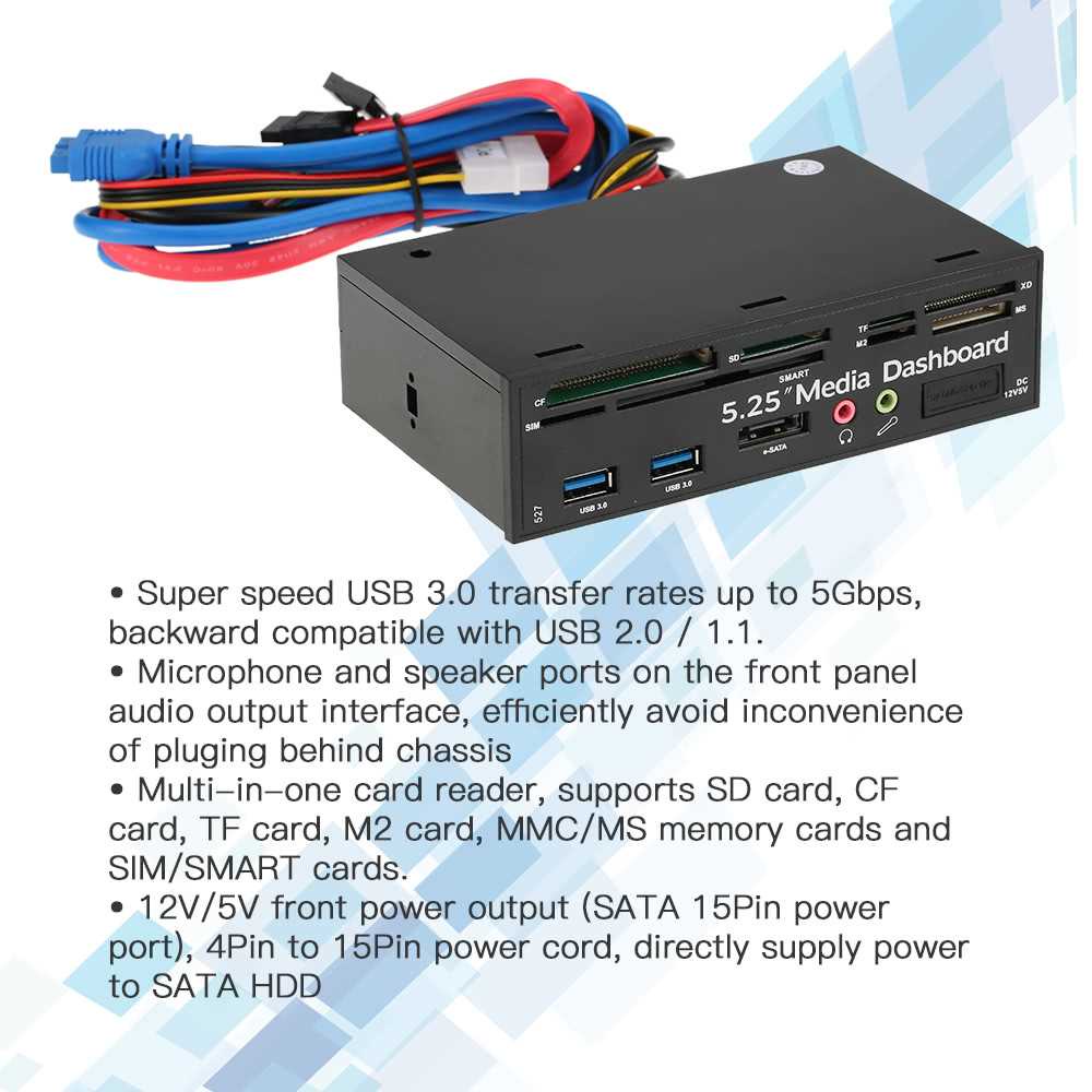 Multi-Function USB 3.0 Hub eSATA Port Internal Card Reader PC Dashboard Media Front Panel Audio for SD MS CF TF M2 MMC