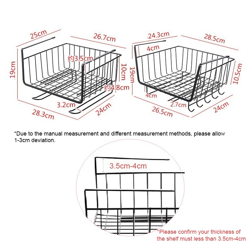 Kurikku Multi Purpose Metal Hanging Basket Under Shelf Drawer Storage Organizer Basket