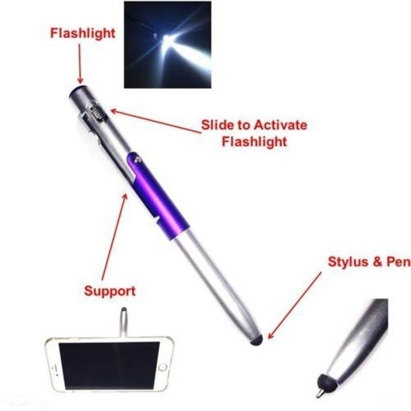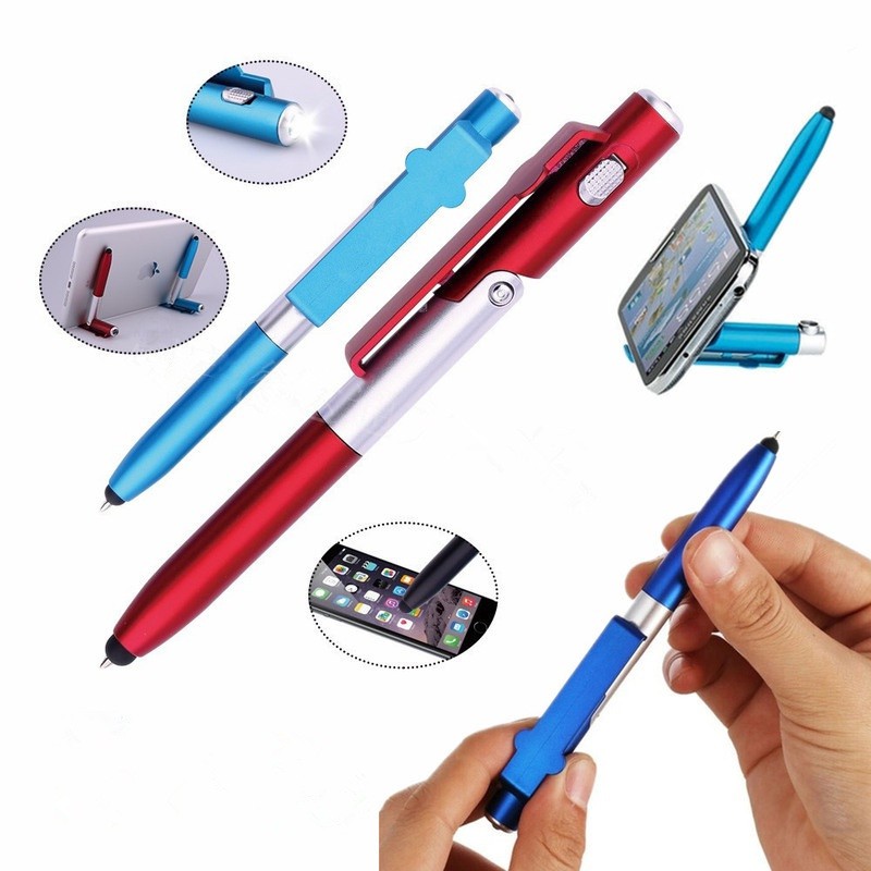 Multi-function 4-in-1 Foldable Ballpoint Pen Stylus (Flashlight + Support) For Tablet Cellphone
