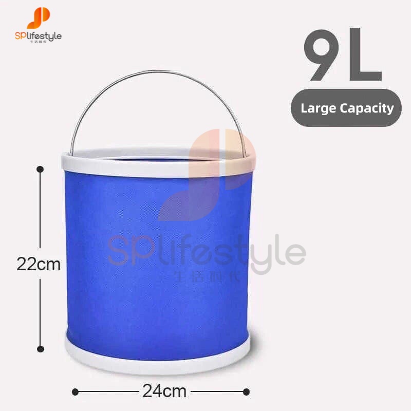 Multi-purpose portable large-capacity 9Litre folding bucket for car washing, fishing bucket, camping