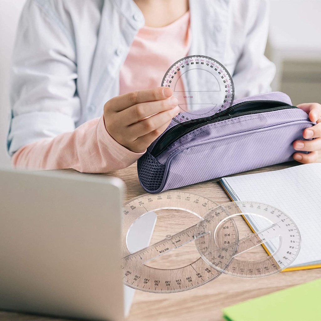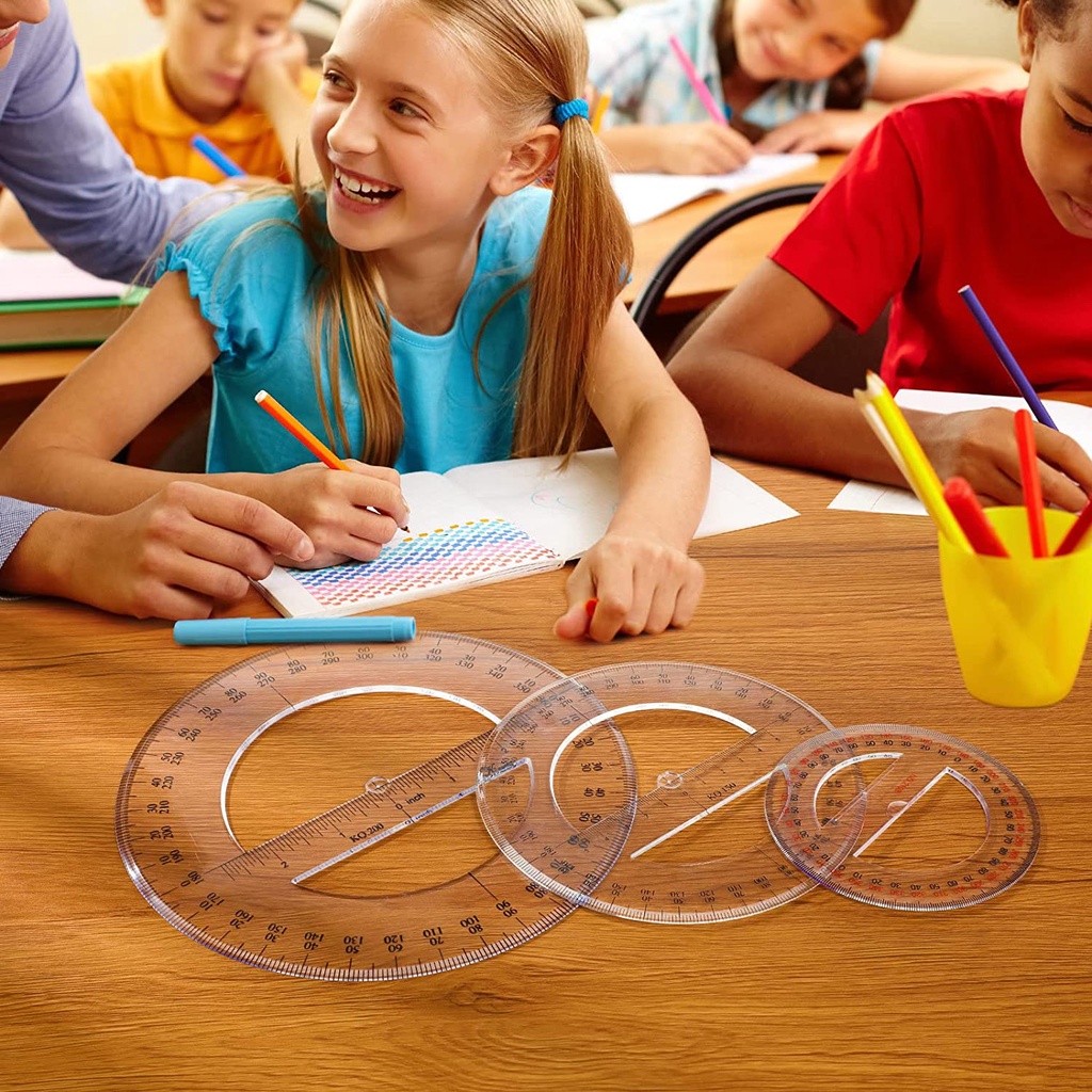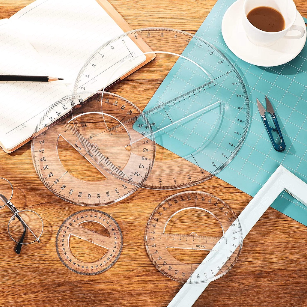 Multi-size 360 Degree Protractor Plastic Math Circle Protractors Clear Circular Protractors Mathematical Tool for Angle Measurement, Student School Office Supplies