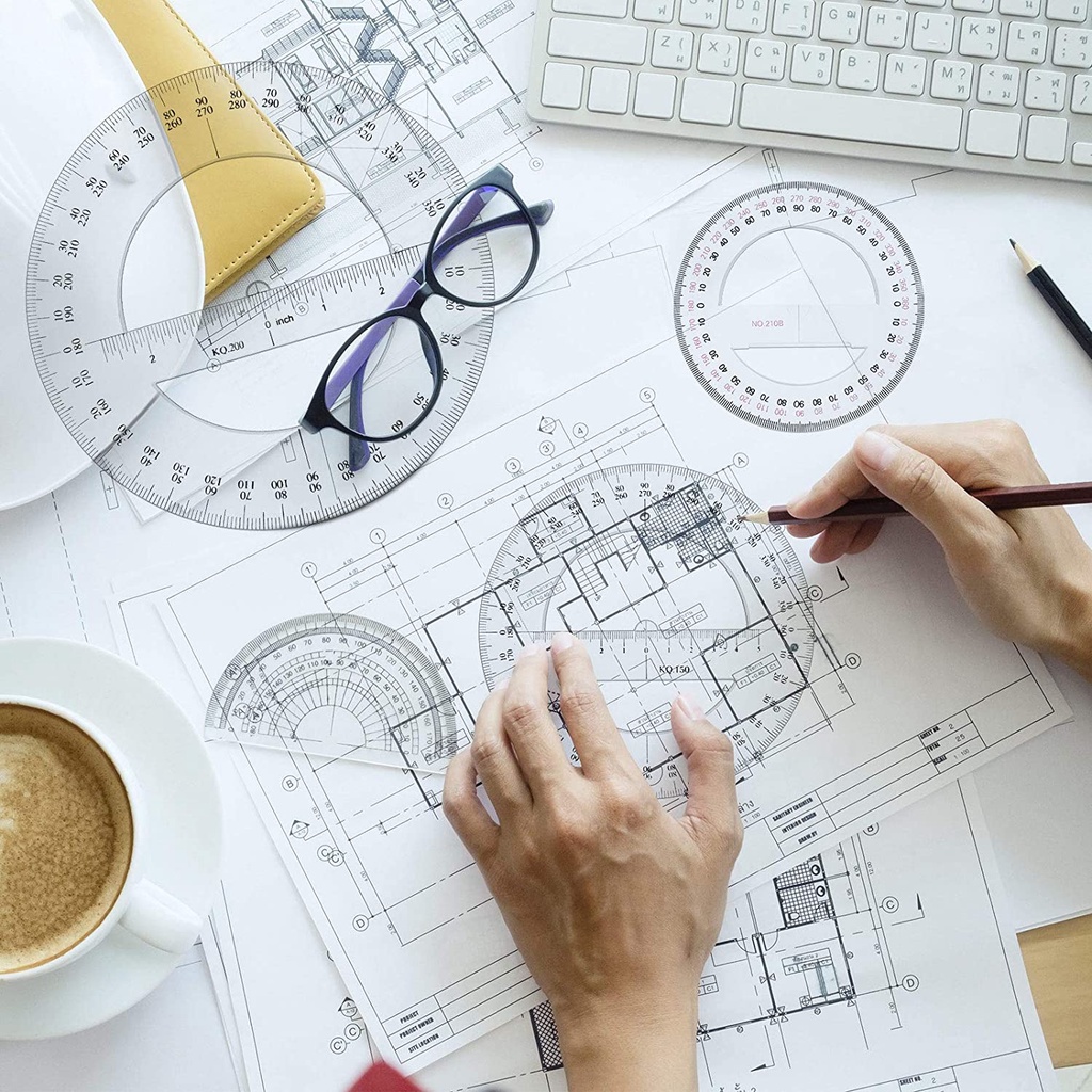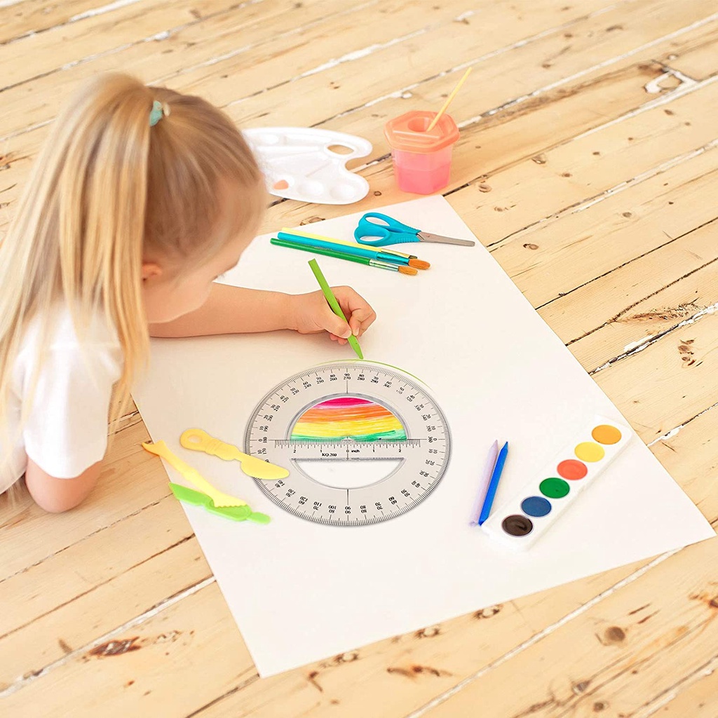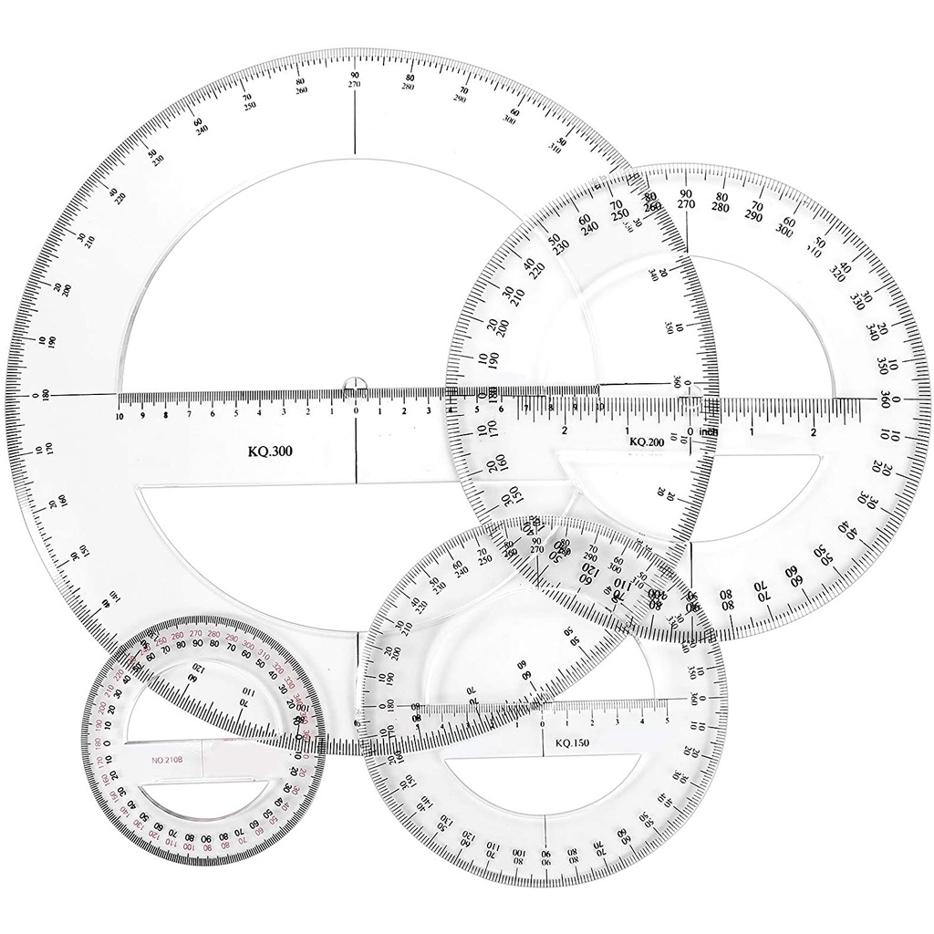 Multi-size 360 Degree Protractor Plastic Math Circle Protractors Clear Circular Protractors Mathematical Tool for Angle Measurement, Student School Office Supplies