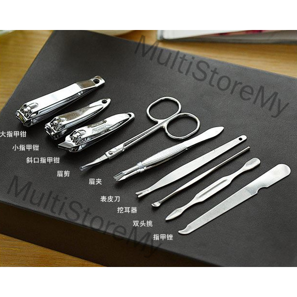 MultiStoreMy 9 PCS Stainless Steel Manicure Set Nail Clipper Care Personal Grooming Kit Pedicure Ear Pick Set with Stora