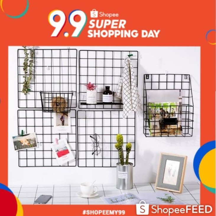 Multidesigns NOTICE BOARD/PHOTO METAL GRID Multifunctional Wall Nordic Style