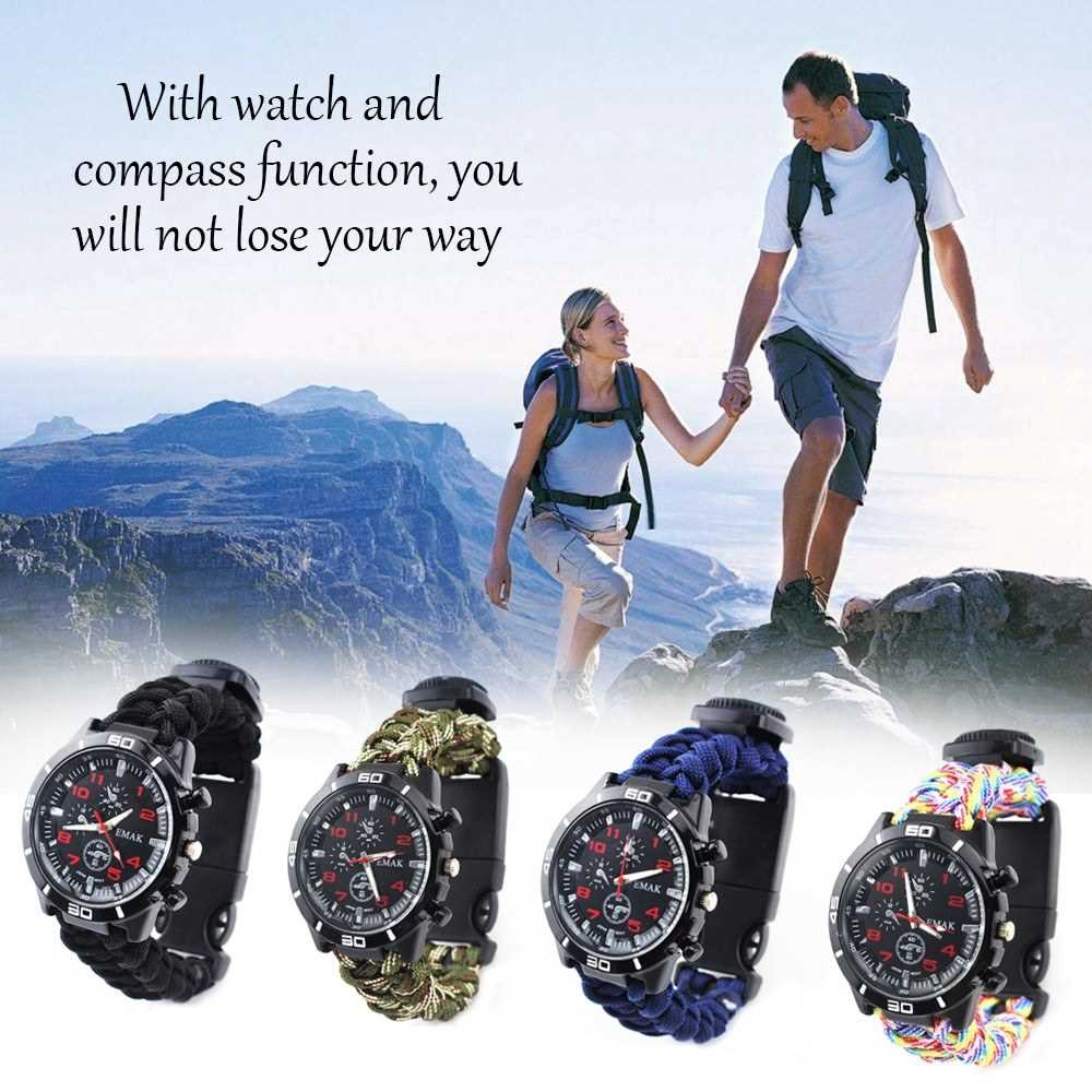 Multifunction Woven Strap Outdoor Survival Camping Watch with Compass Rescue
