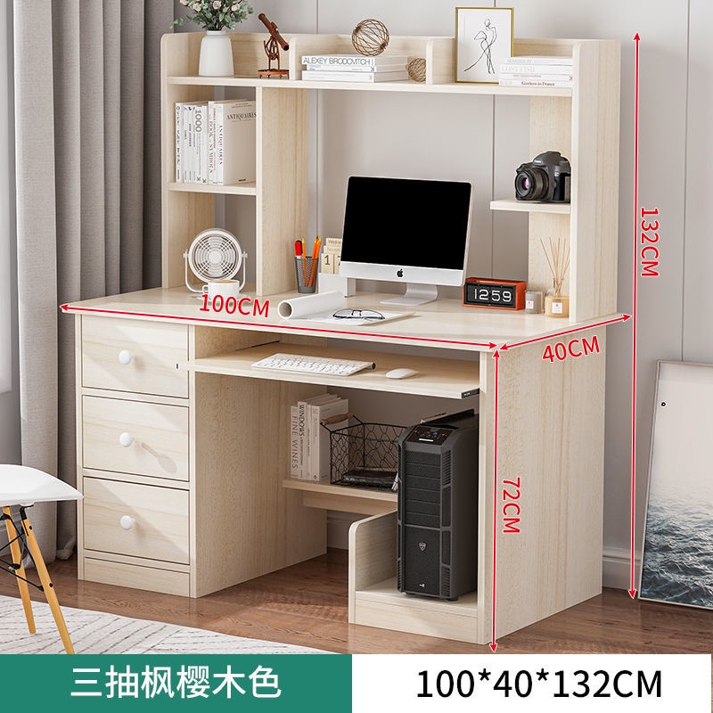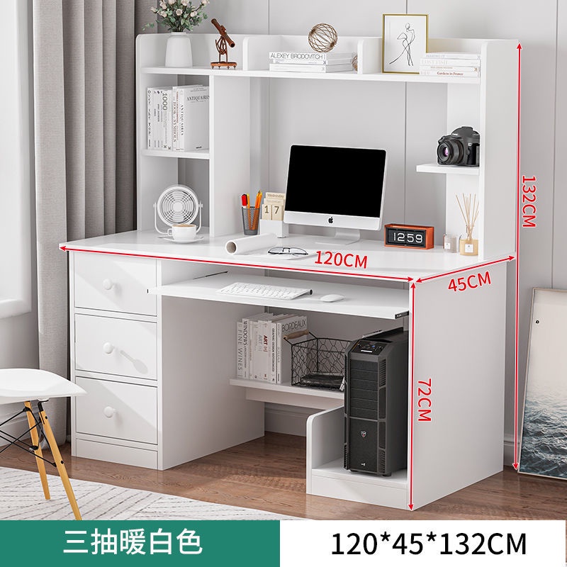 Multifunctional Office Computer Study Desktop Working Desk Table Bookshelf With Drawer Keyboard Tray Meja Komputer