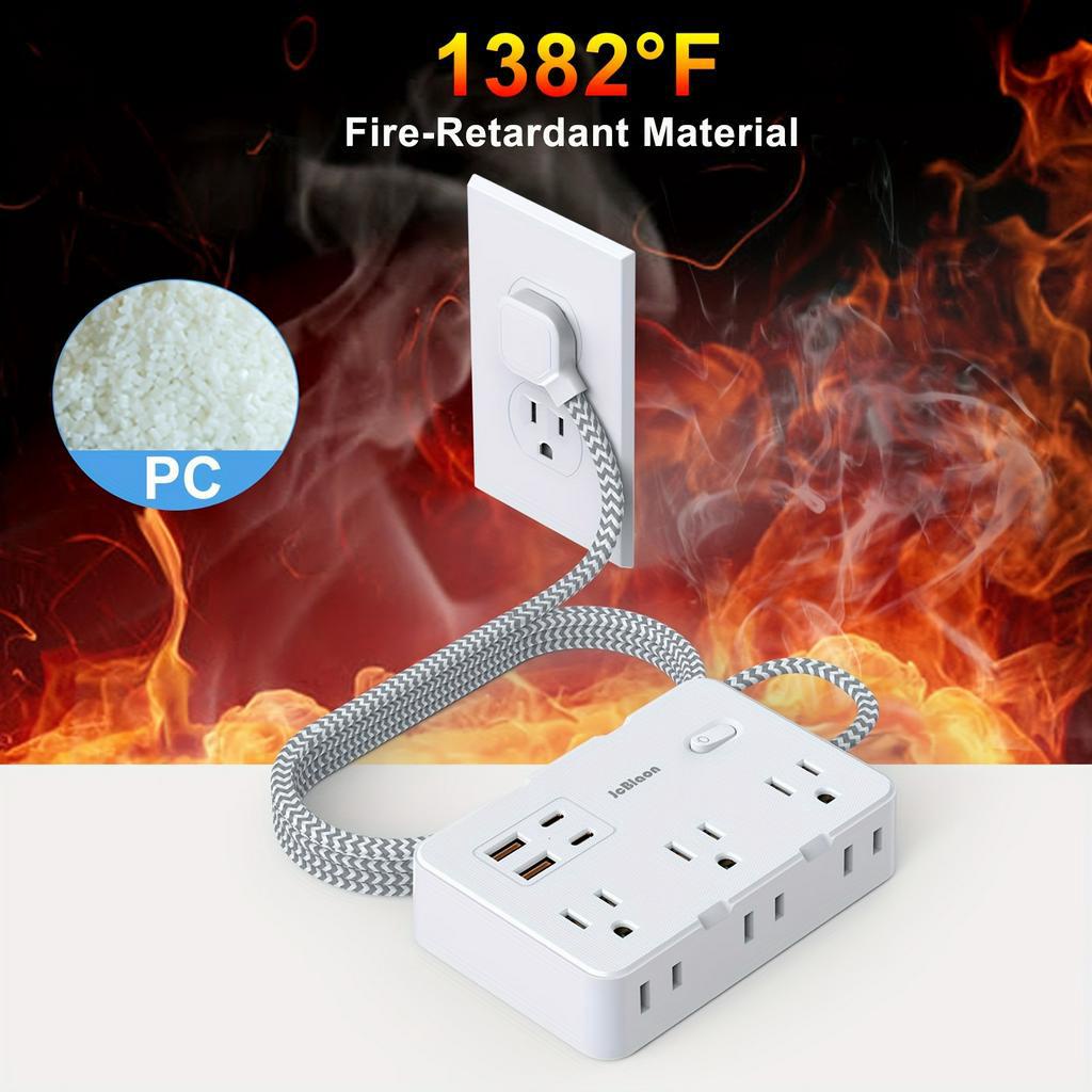Multifunctional Power Socket, Built-in Power Socket, Fire Safety Shock Resistance Explosion-proof Smart Home, Fast Charging 5V USB Port, 1.5m Braided Extension Cord, AC Outlets