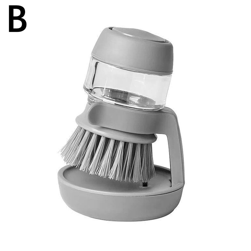 Multifunctional Pressing Cleaning Brush Short Handle Dish Washing Brush With Pressing Soap Dispenser Kitchen Cleaning Tools Non-Stick Oil Automatic Liquid Adding Sponge Dishwashing