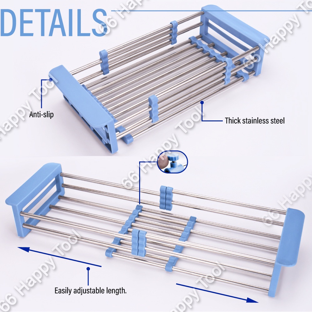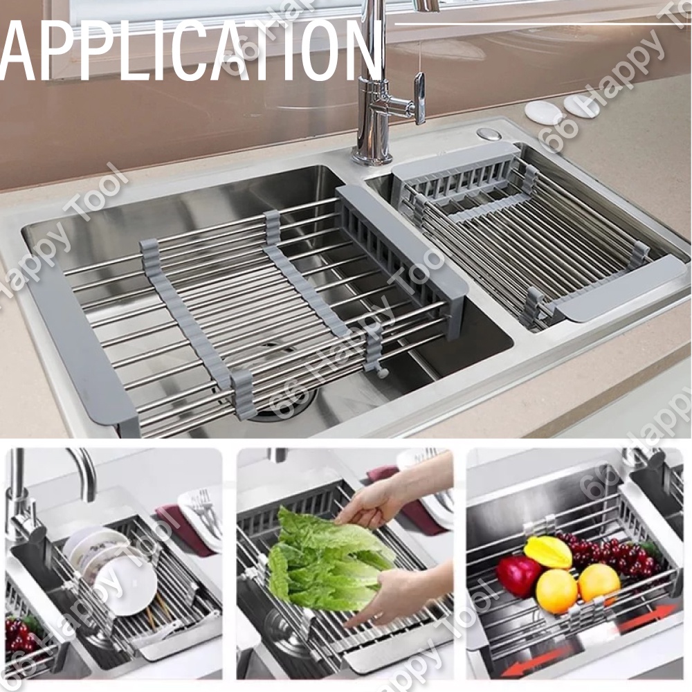 Multifunctional Retractable Adjustable Drain Basket Kitchen Drainer Expandable Sink Shelf Stainless Steel ABS Dish Rack