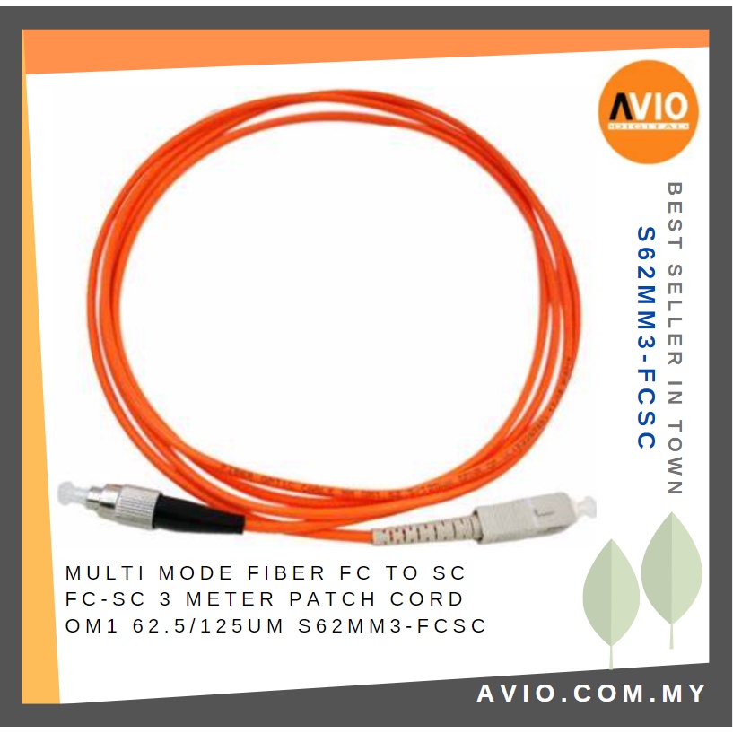 Multimode Multi Mode FC to SC FC-SC SC-FC Fiber Optic 3m Patch Cord Cable OM1 62.5/125um S62MM3-FCSC