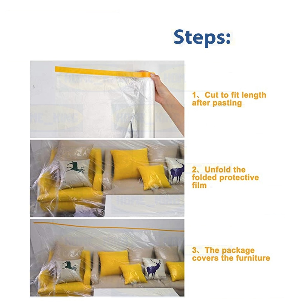 Multipurpose Masking Film with Tape Painting Protection Covering Plastic Drop Cloth Sheet Spraying Dust Cover