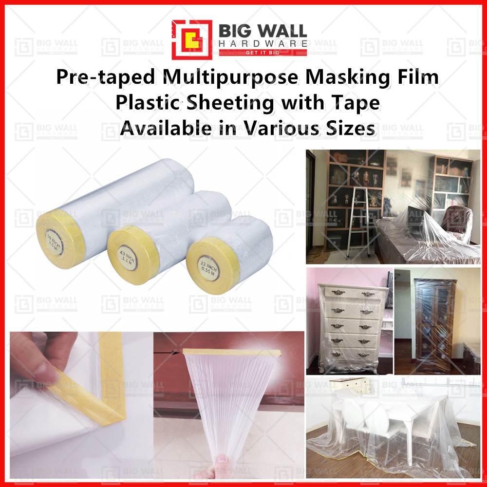 Multipurpose Plastic Sheet Protective Cover 9'x20' / Pre-taped Multipurpose Masking Film (Big Wall Hardware)