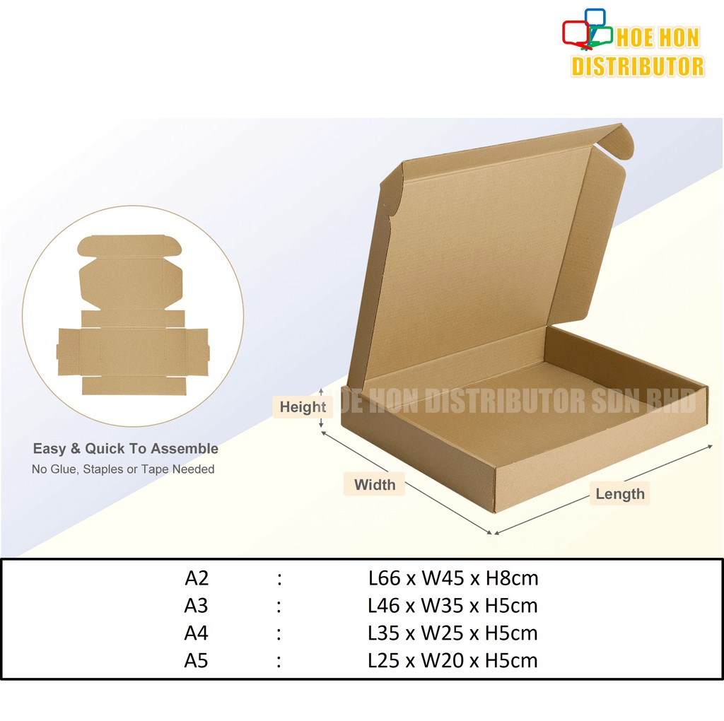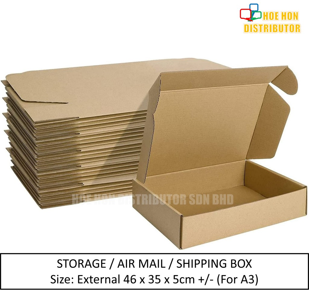 Multipurpose Storage Box A3 Shipping Air Mail Packaging Corrugated Pizza Courier Kotak Frame School Office VIP Document