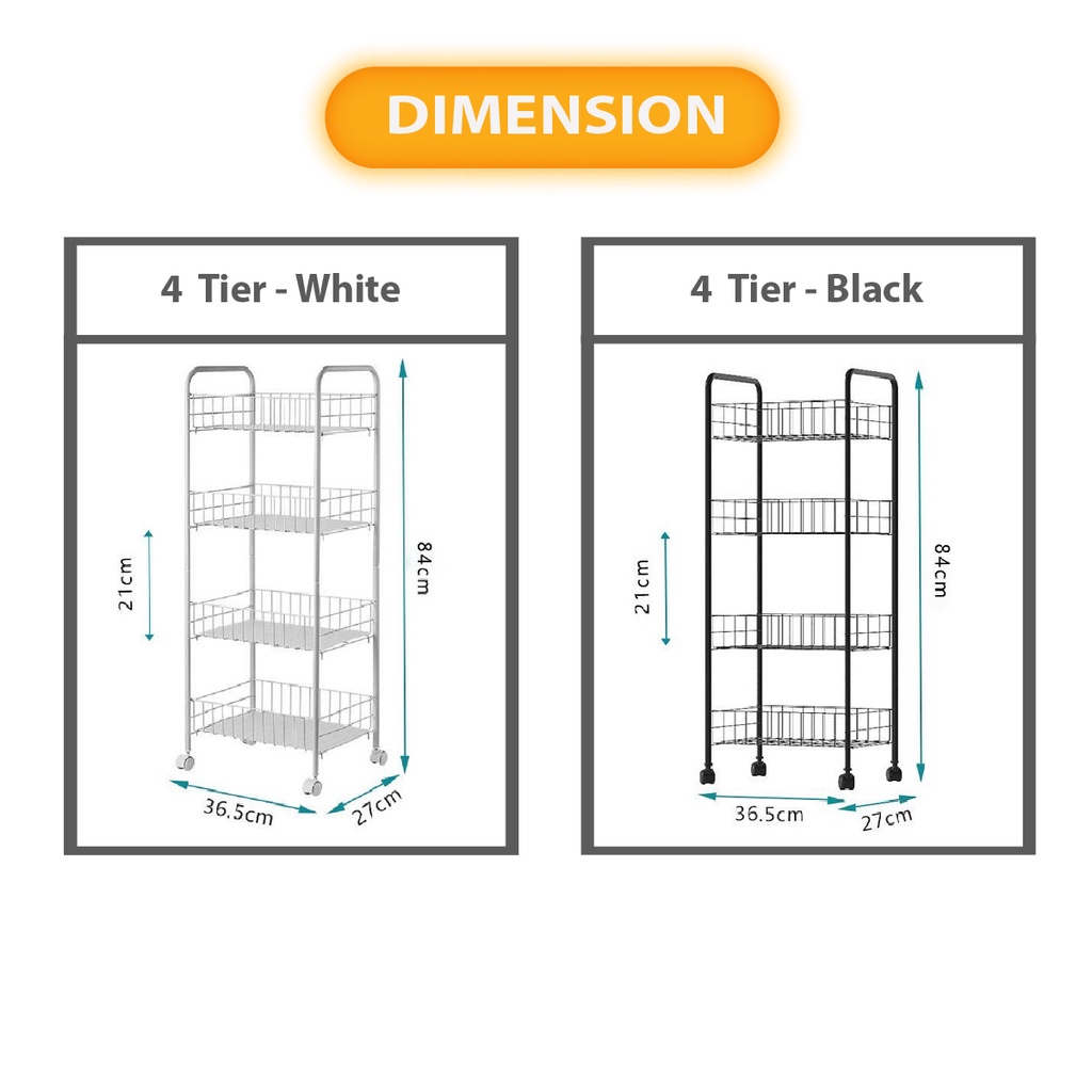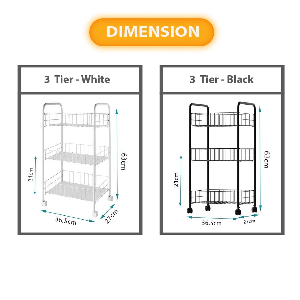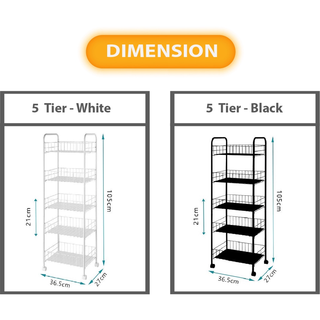 Multipurpose Trolley Rack With Wheel 3/4/5 Layer Rak Troli Serbaguna Roda 3/4/5 Lapisan Rak Roda Dapur Rak Troli DIY