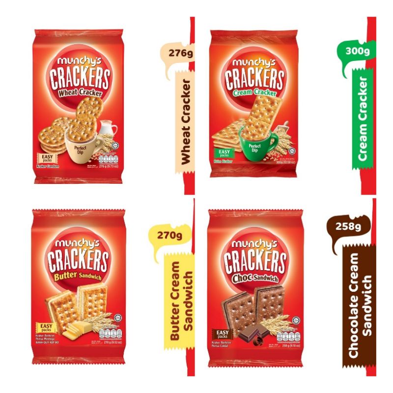 Munchy Munchy's Crackers Wheat Crackers Cream Crackers Butter Flavoured Chocolate Flavoured Cream Sandwich Biscuit