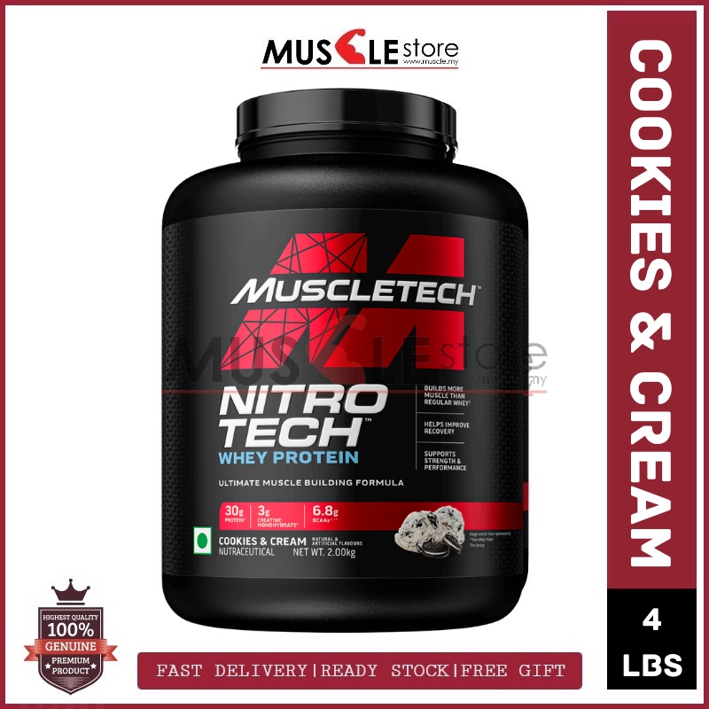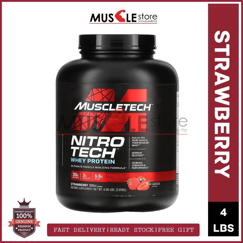 MuscleTech Nitro Tech 4lbs - Nitrotech Whey Protein Isolate, Fast Muscle Recovery, Lean Muscle, Susu Gym