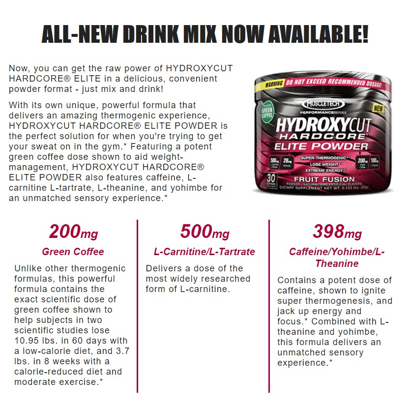 Muscletech Hydroxycut Hardcore Elite Powder 30 Serving(Made In USA) Effective Fat Burner Weight Loss Berkesan