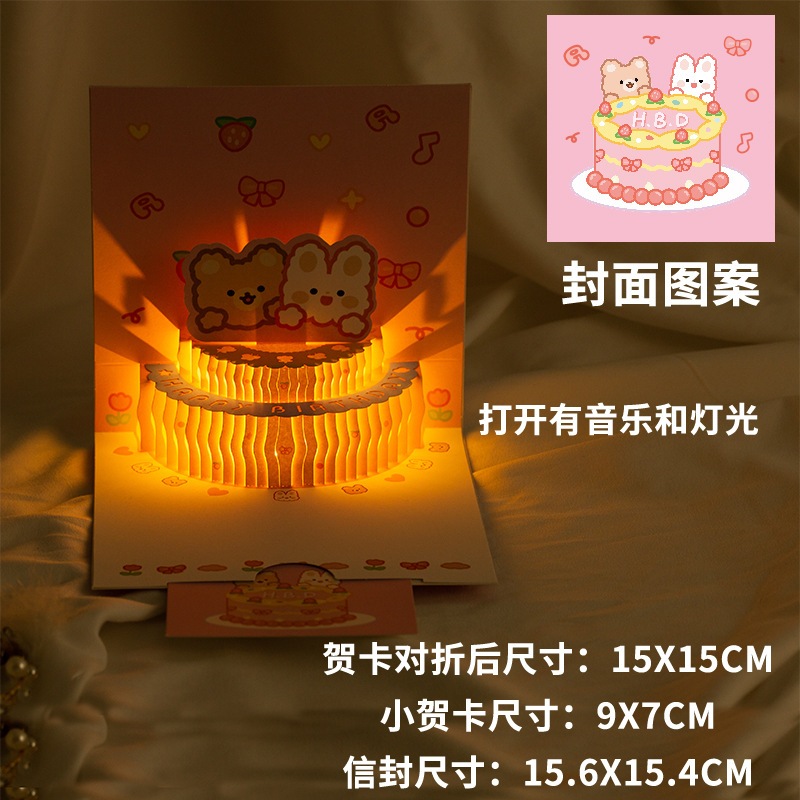 Musical Birthday Cards Color Light&Blowable Candle 3D Popup Card with Happy Birthday Music Bday Gift Greeting Card to Women Kids