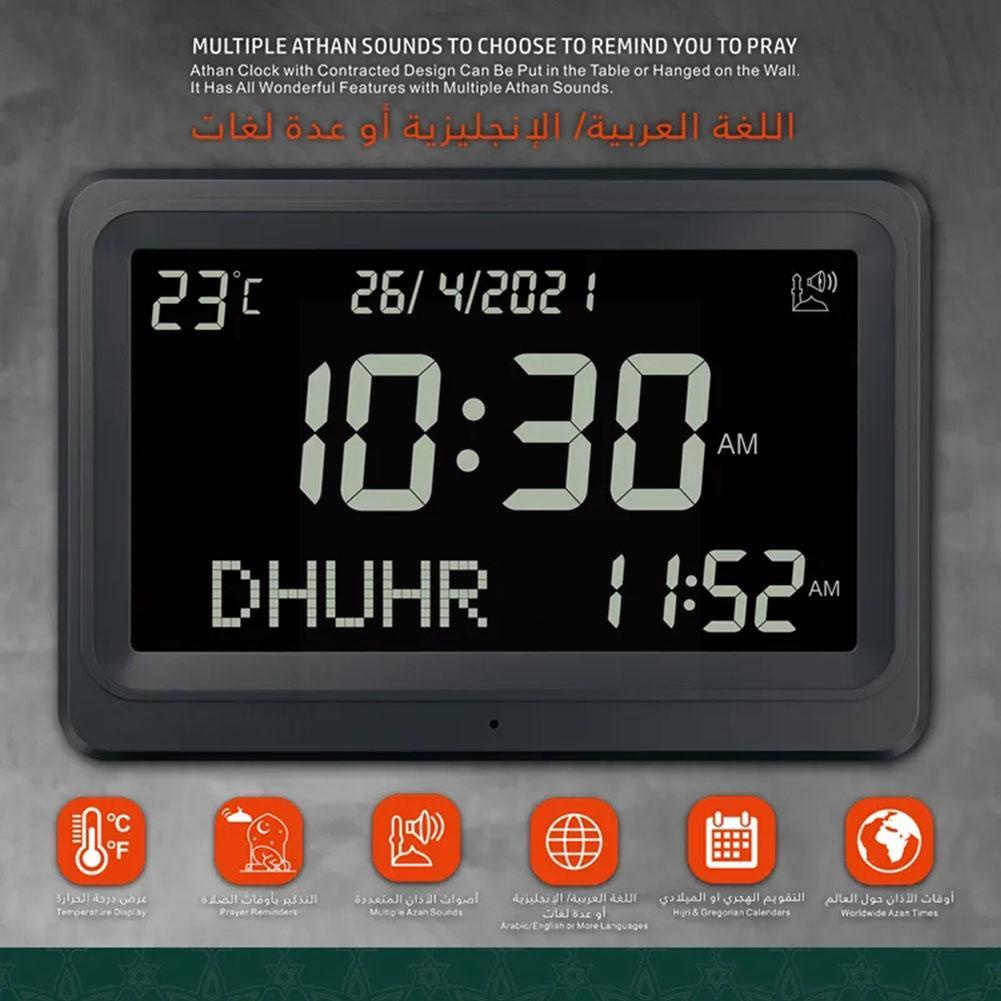 Muslim Prayer Clock Azan Clock Digital Clock Over 6500 Cities' Prayer times display Wall Prayer Clock Jam Dinding