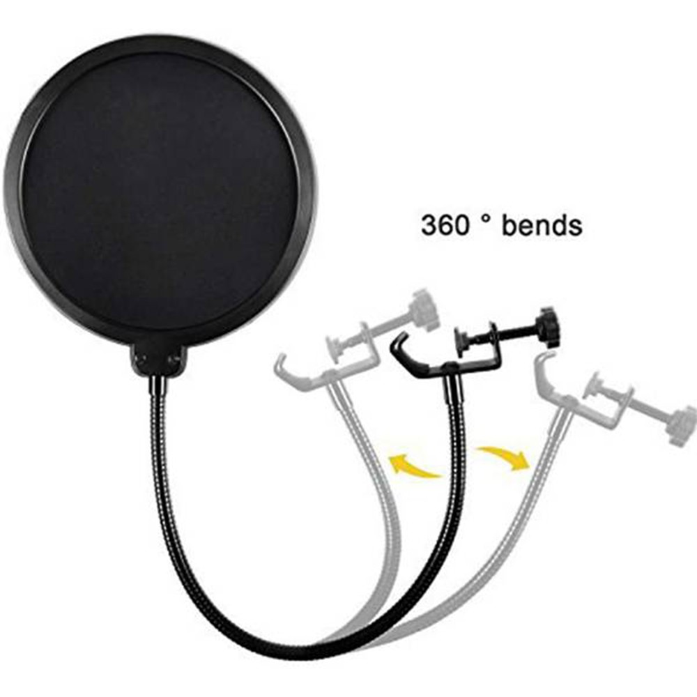 Muzik+ Professional Double Layer Filter Pop Shield for Condenser Studio Microphone Mask Shield with Stand Clip