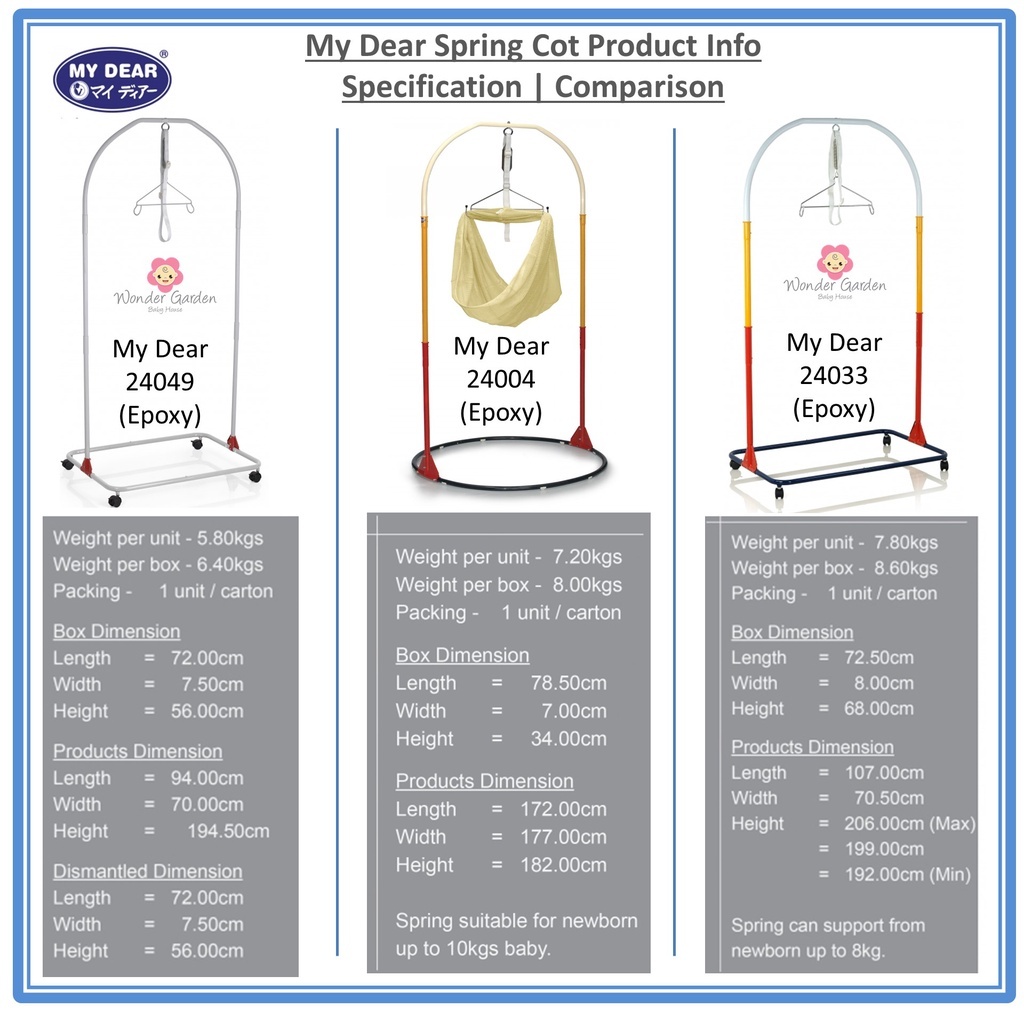 My Dear 24004 Height Adjustable Epoxy Spring Cot With Cradle Net (Buaian Besi)