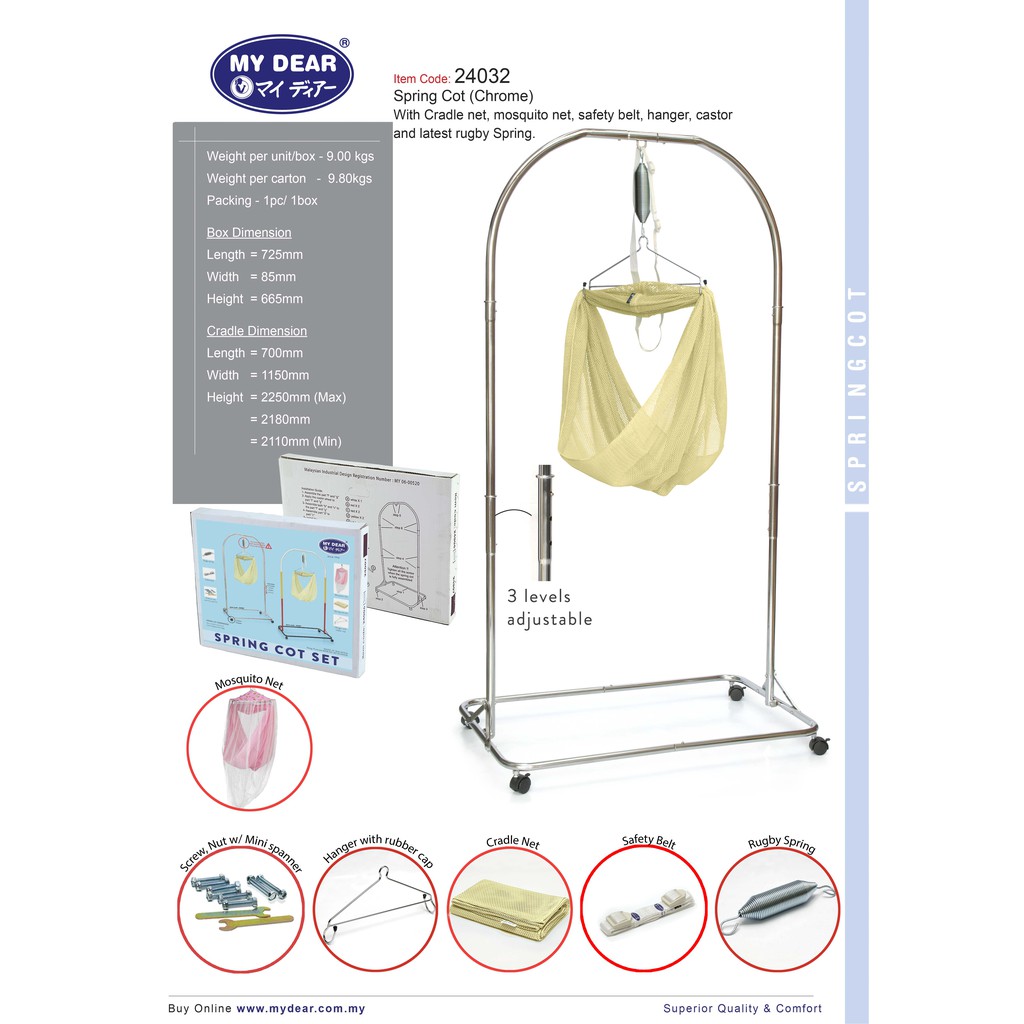 My Dear Baby Cradle / Baby Spring Cot 24032 Full Set(Chrome)