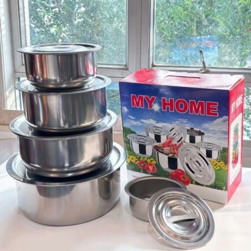 My HOME Large Indian Pot Set 5-Size High Quality Stainless Steel Stock Pot Cooking Pot Food Pot (14-30)CM