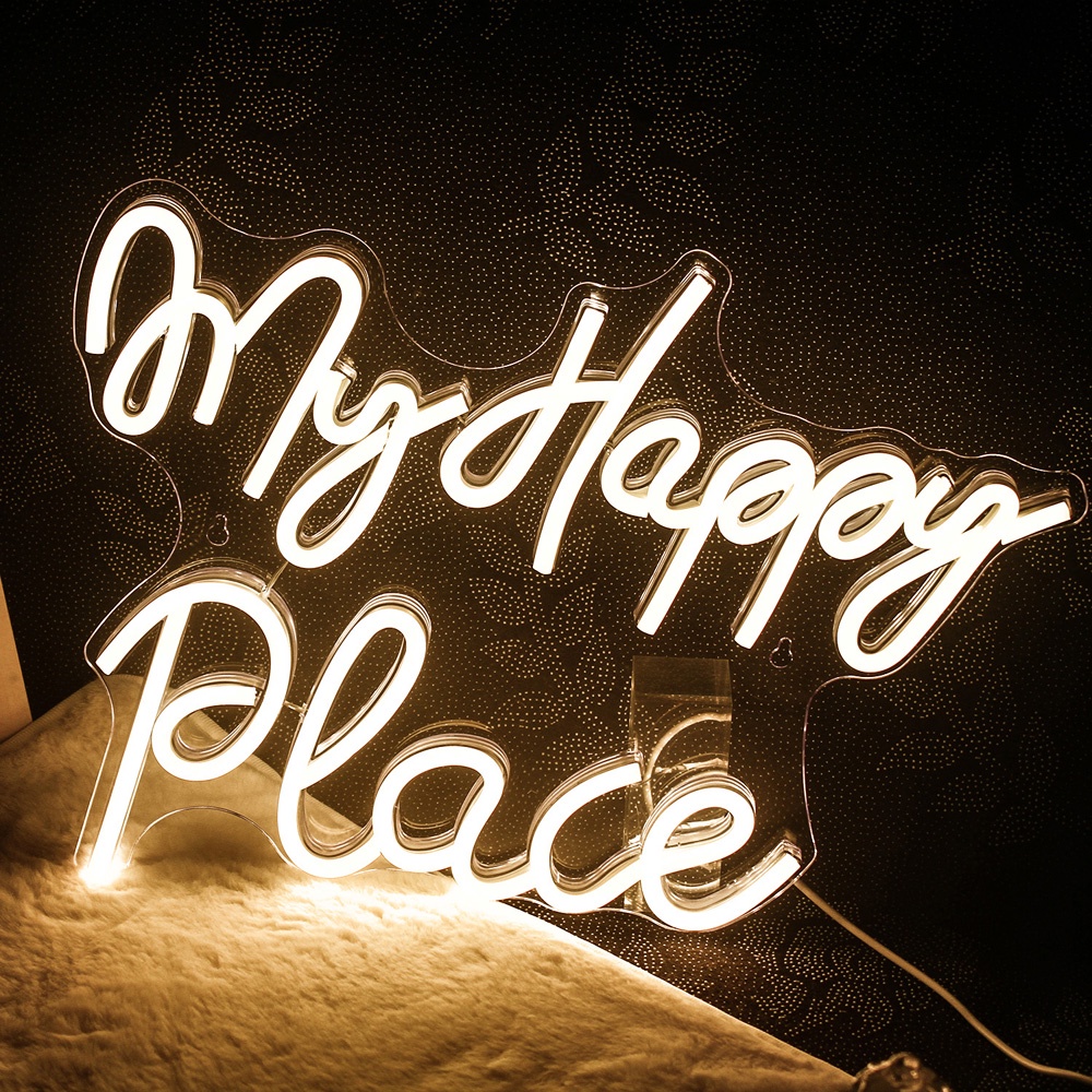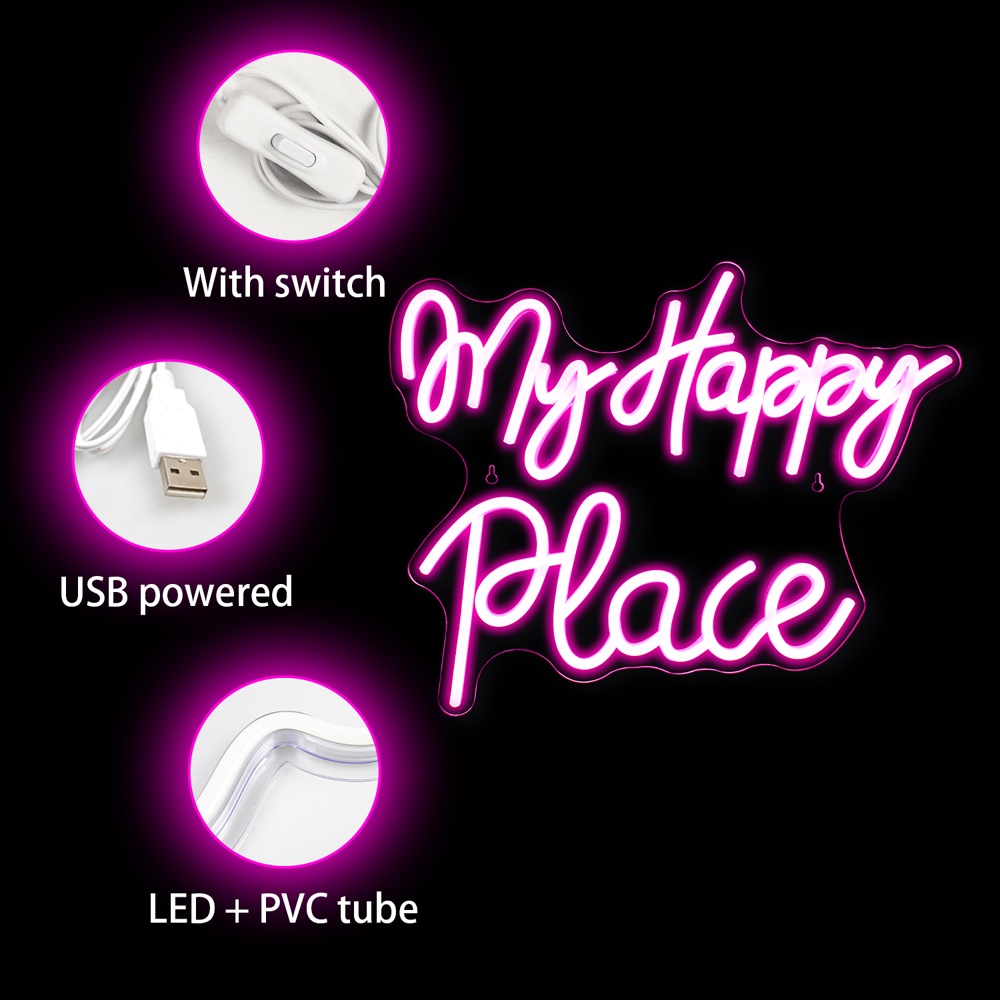 My Happy Place LED Neon Sign Light Home Art for Bar Bedroom Kid Room Club Wedding Birthday Party Wall Decor Gift