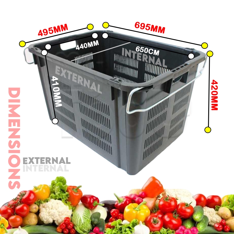 Mytools 9901 Industrial Storage Container Basket Plastic Stackable Crate Heavy Duty with 2 Side Steel Handle (Malaysia)