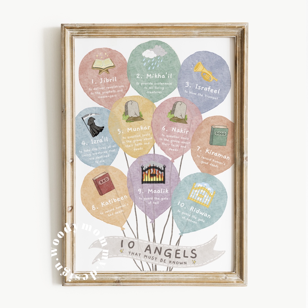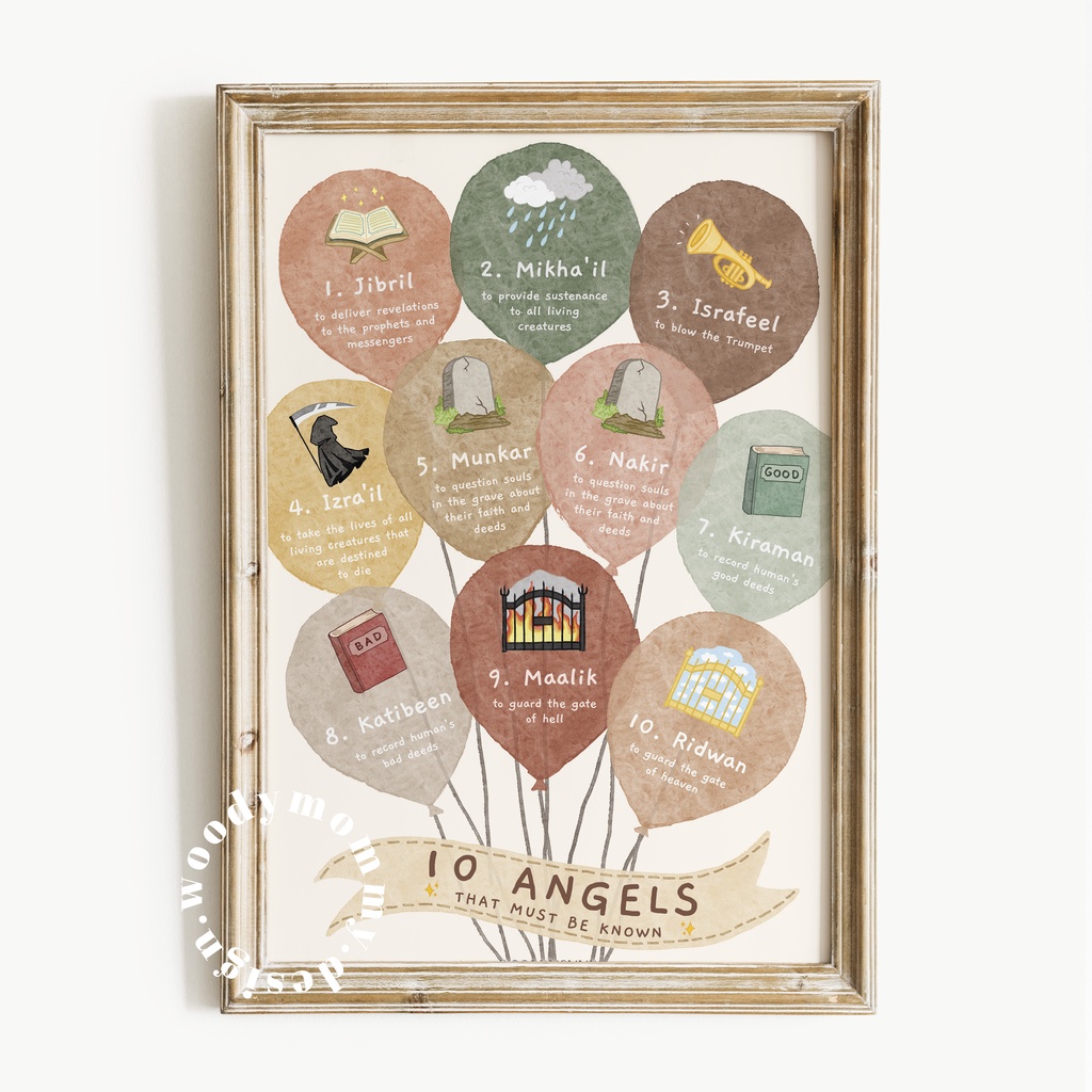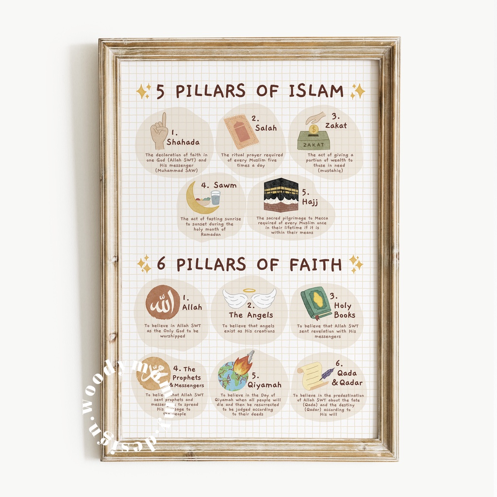 NABI Islamic Children's Educational Poster Pillars of Islam Faith - 10 Angels - 25 Prophets and Messengers - Pillars of Islam Faith - 10 Angels - 25 Prophets and Messengers - Islamic Kids Wall Art wall decoration