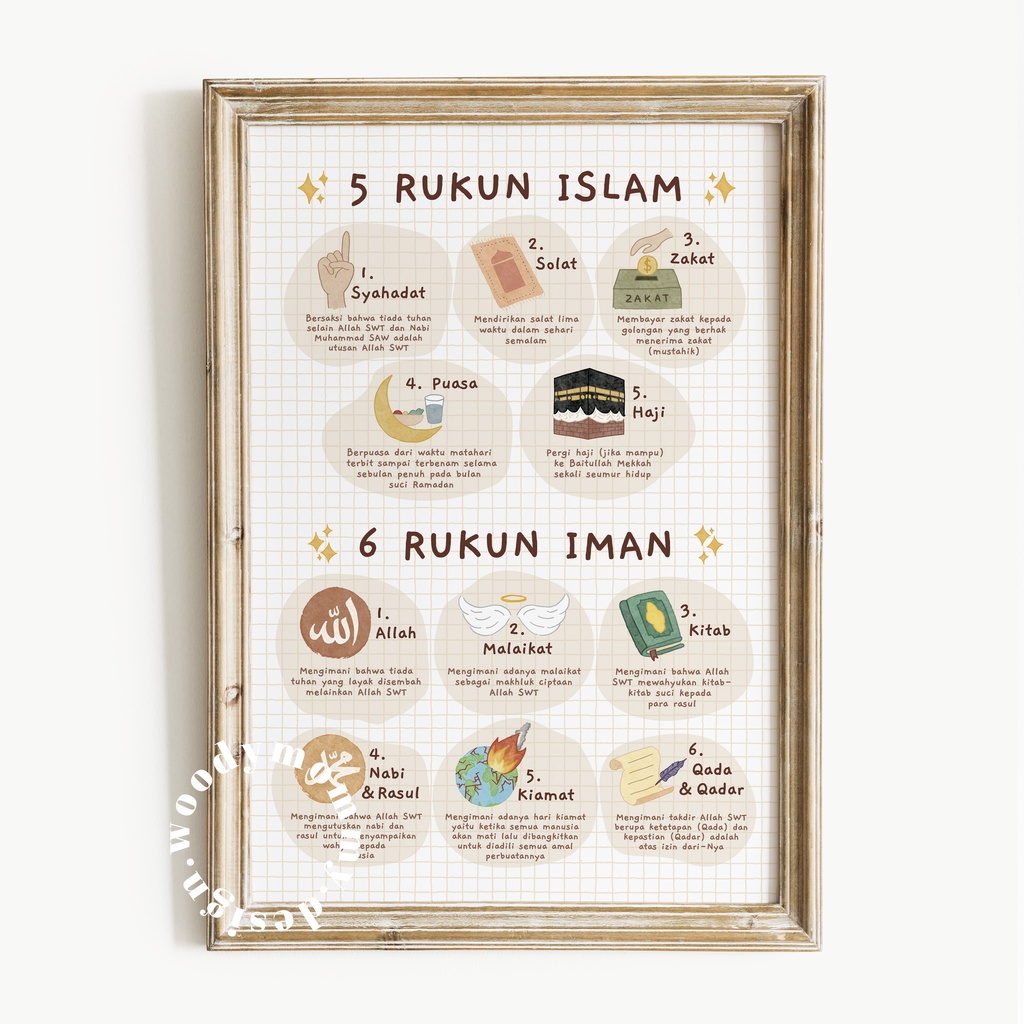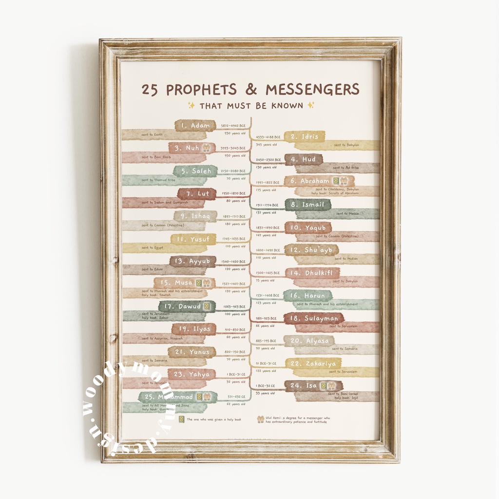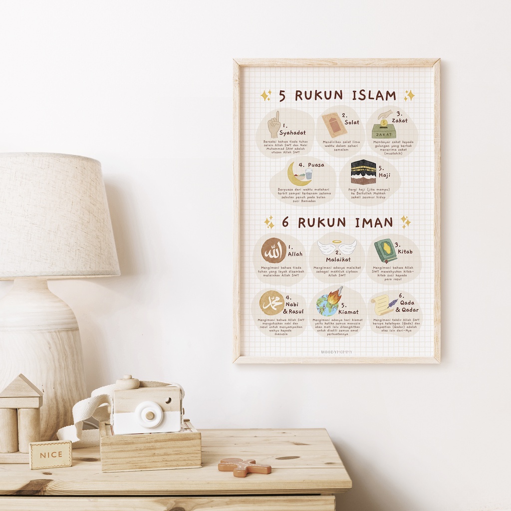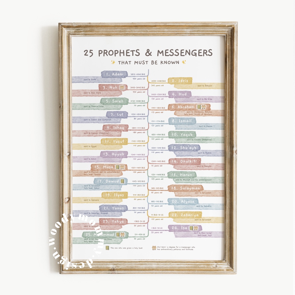 NABI Islamic Children's Educational Poster Pillars of Islam Faith - 10 Angels - 25 Prophets and Messengers - Pillars of Islam Faith - 10 Angels - 25 Prophets and Messengers - Islamic Kids Wall Art wall decoration