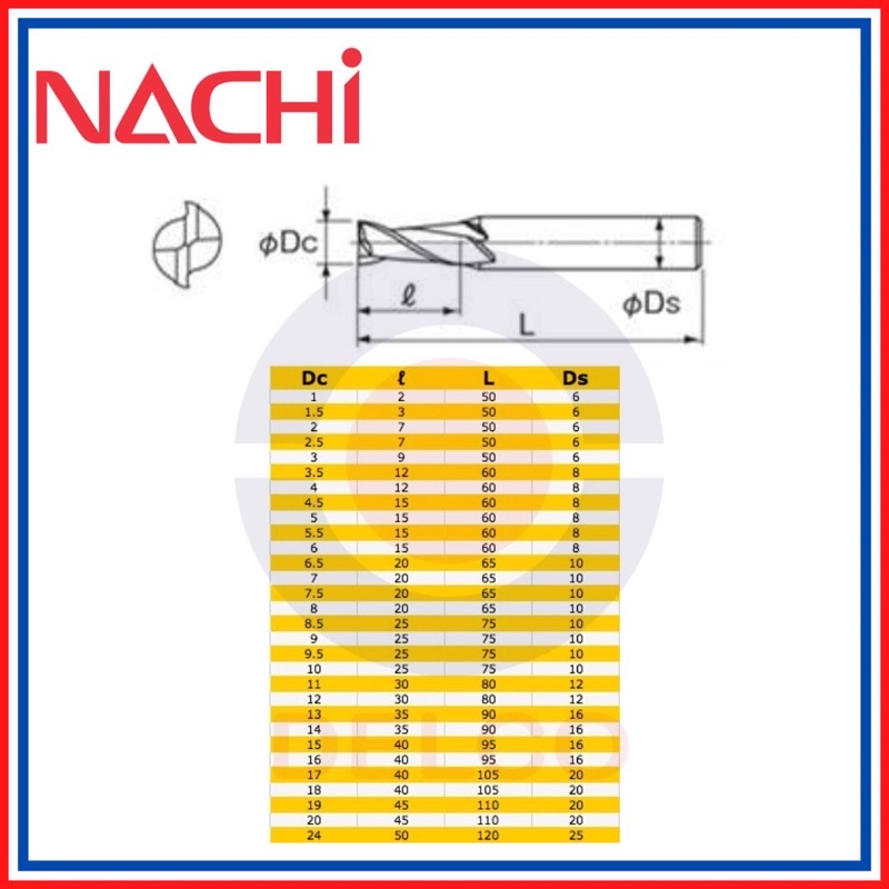 NACHI (1mm - 24mm) SUPER HARD END MILL 2 FLUTE endmill two flutes