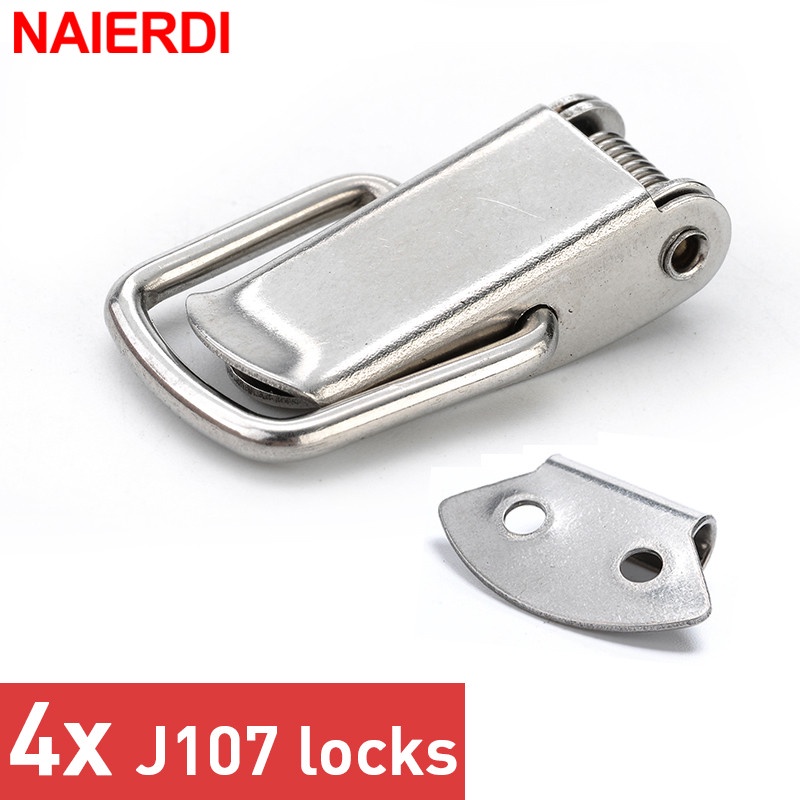 NAIERDI 4PCS Cabinet Box Locks Spring Loaded Latch Catch Toggle Iron Hasps For Sliding Door Window Furniture Hardware