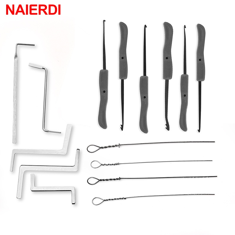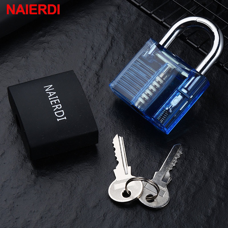 NAIERDI Locksmith Hand Tools Supplies Lock Pick Set Transparent Visible Practice Padlock With Broken Key Removing Hooks Hardware